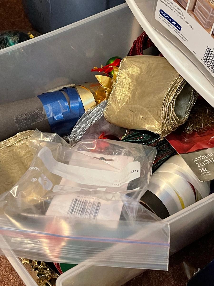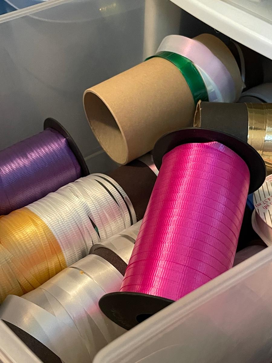 Multiple containers of all types of ribbons.