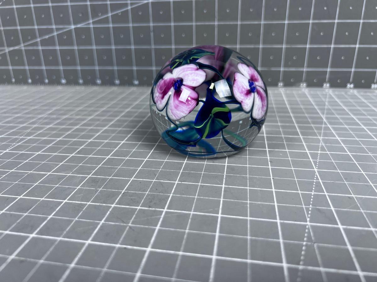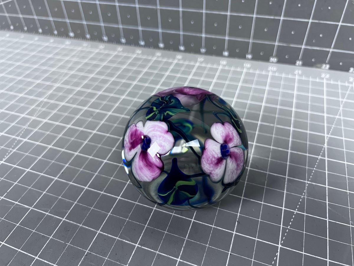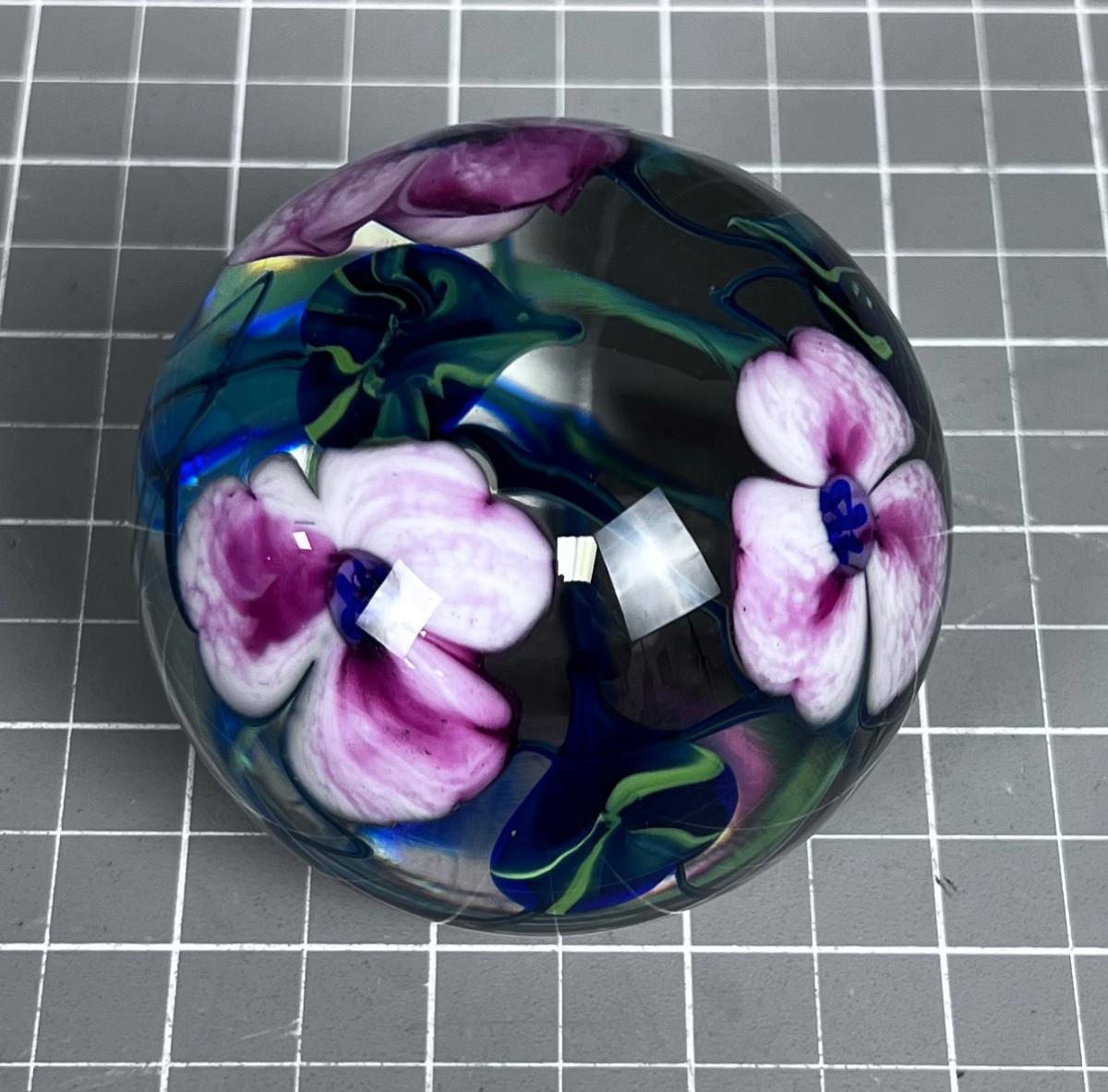 Richard OLNE Paper Weight Signed and Dated Pink Morning Glory