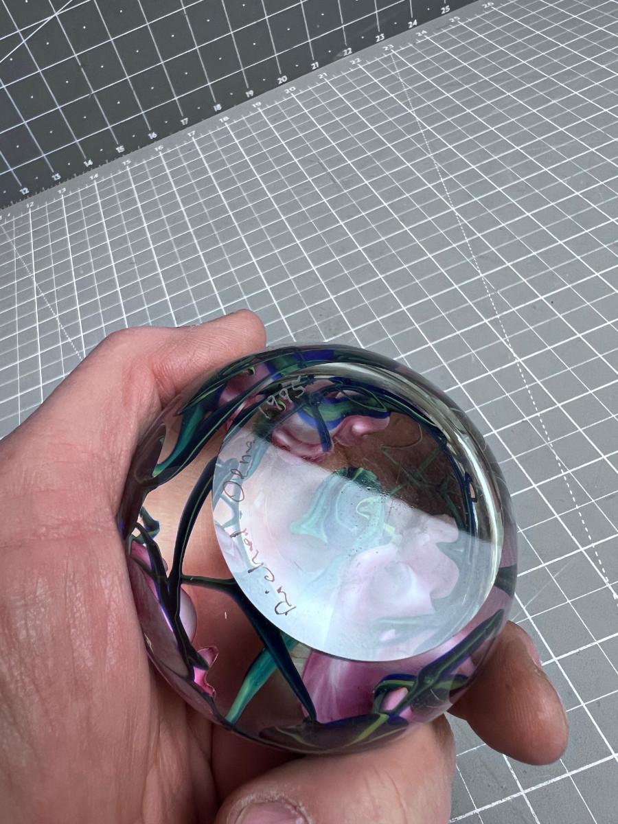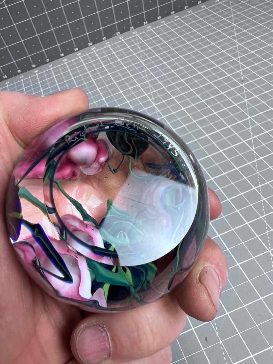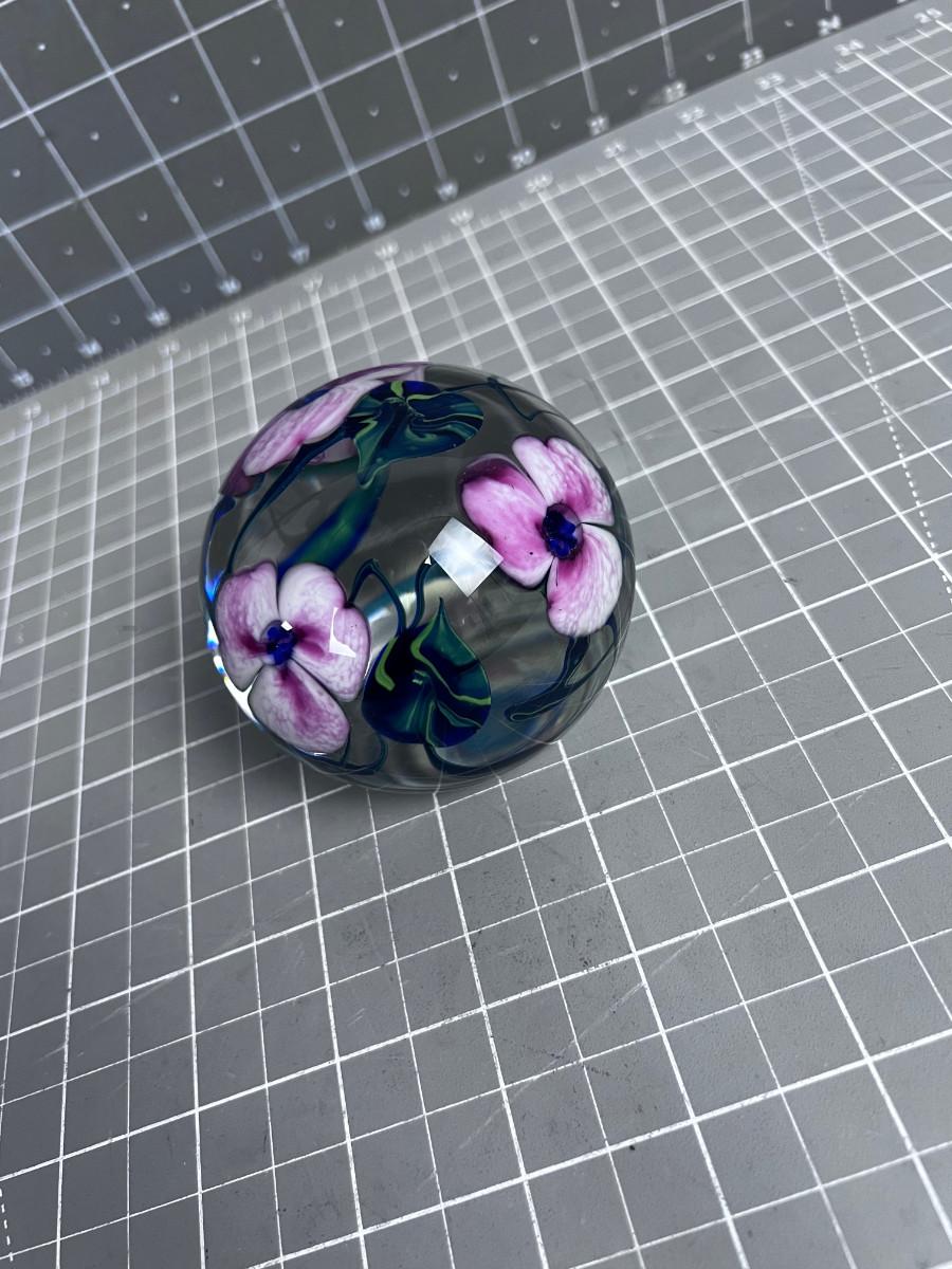 Richard OLNE Paper Weight Signed and Dated Pink Morning Glory