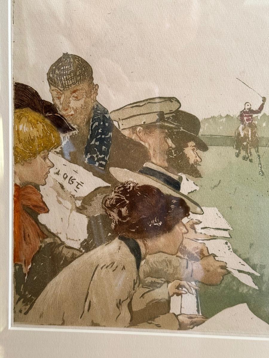 Richard Ranft, At The Races, 1895, original color etching and aquatint, signed in the plate.