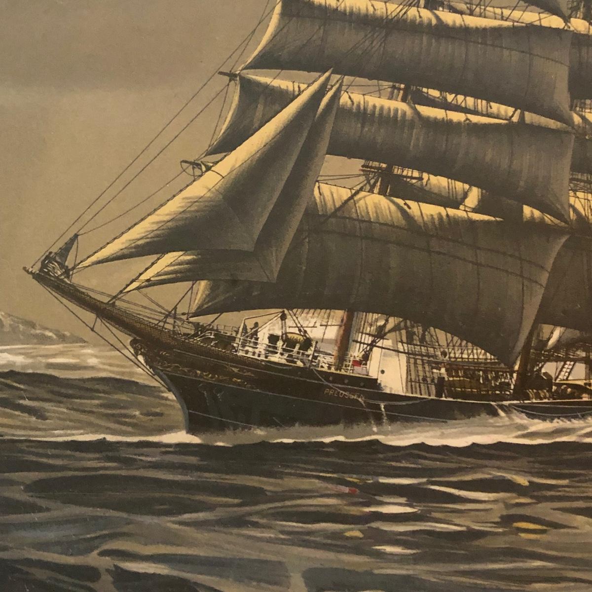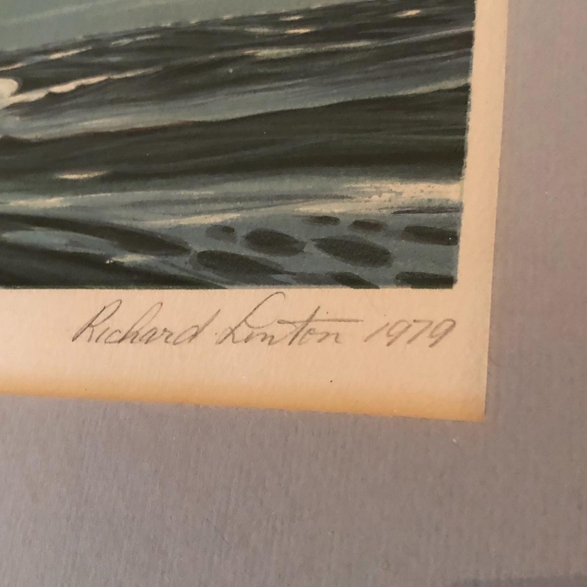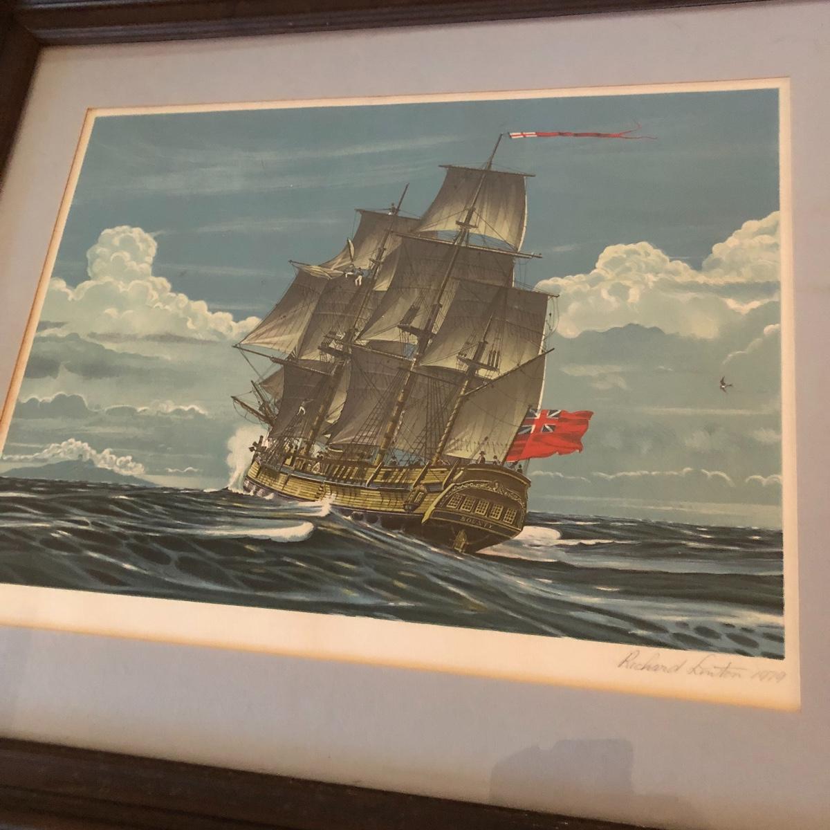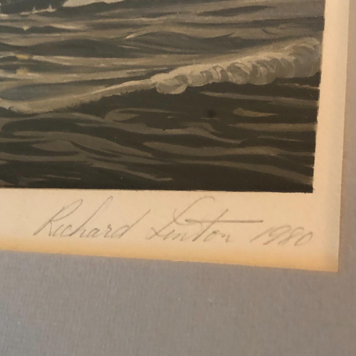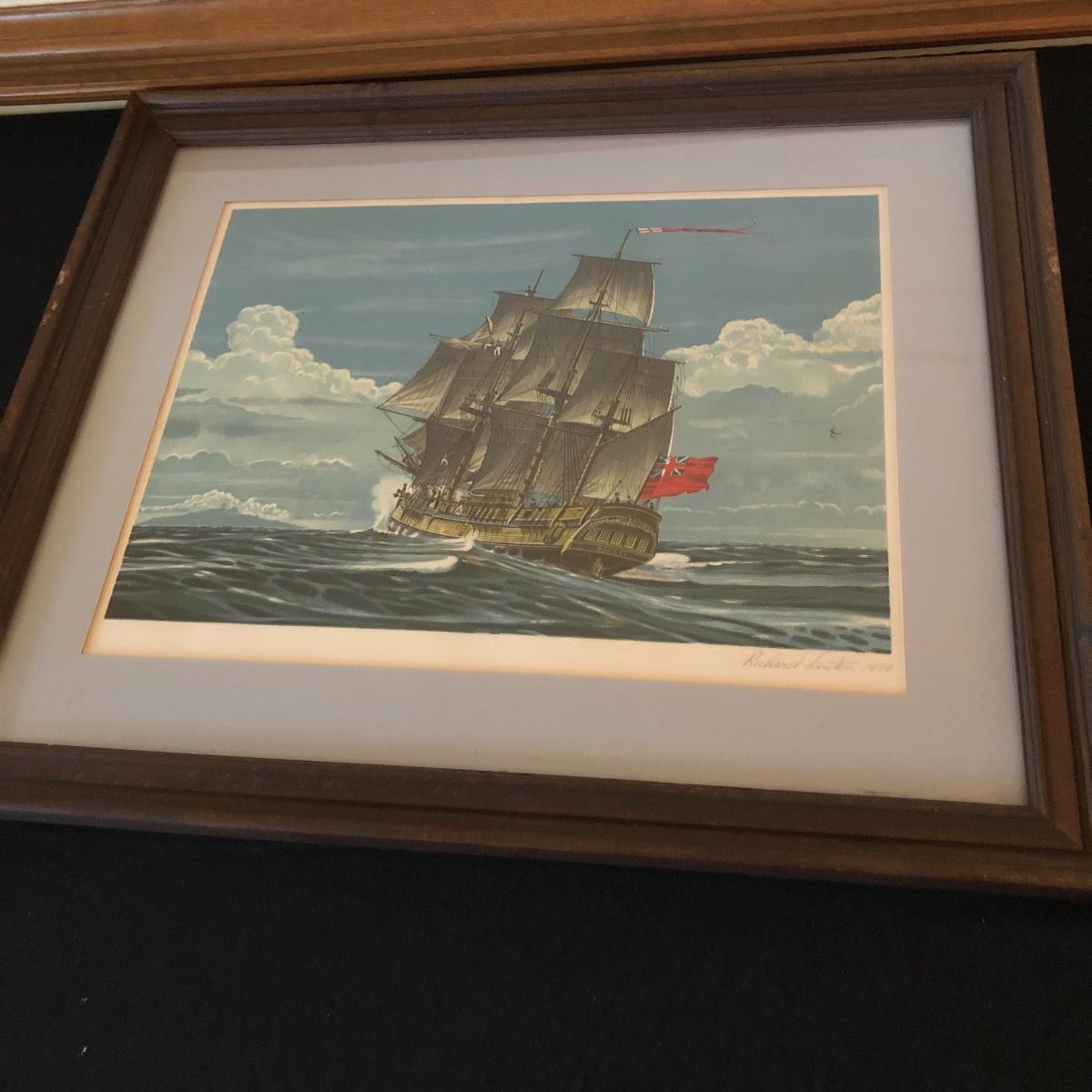 These two pieces of art are authenticated as Richard Linton lithographs: one, “Landfall-Tahiti” and “Rounding the Horn.” Please note the Certificate of Authenticity on the back side of each print. They both measure 26”. X 22.” Shipping available, please call UPS at 828-252-6930 with dimensions for a shipping quote.