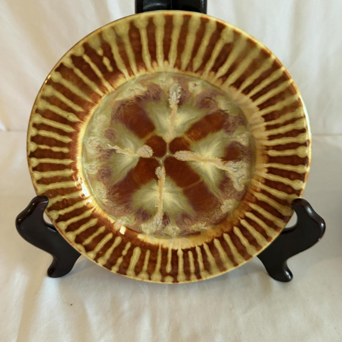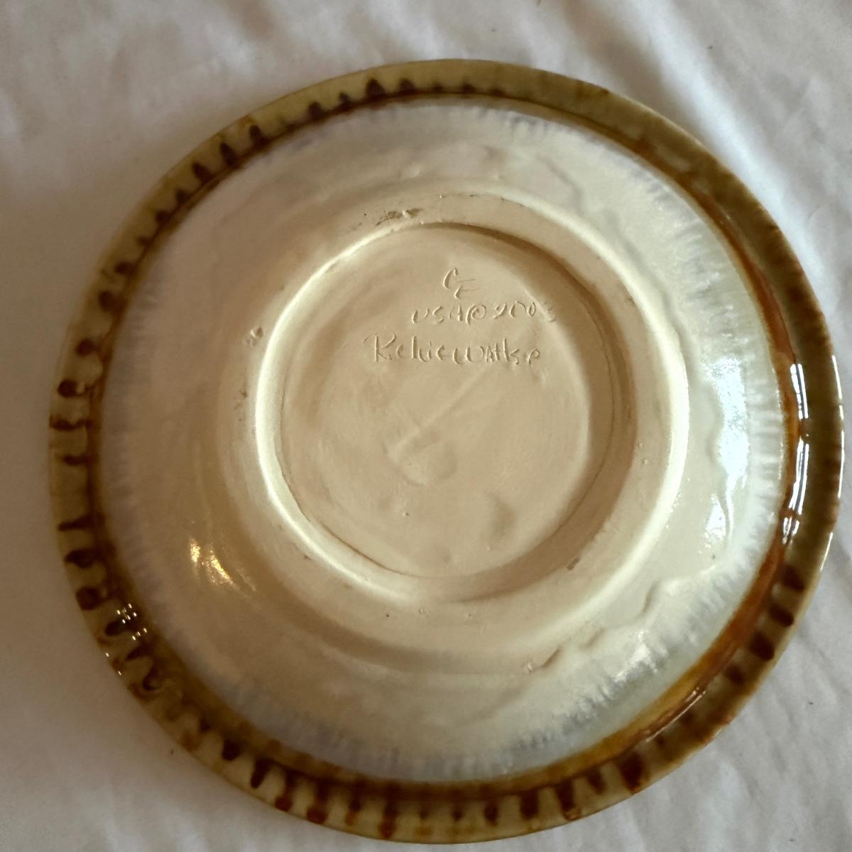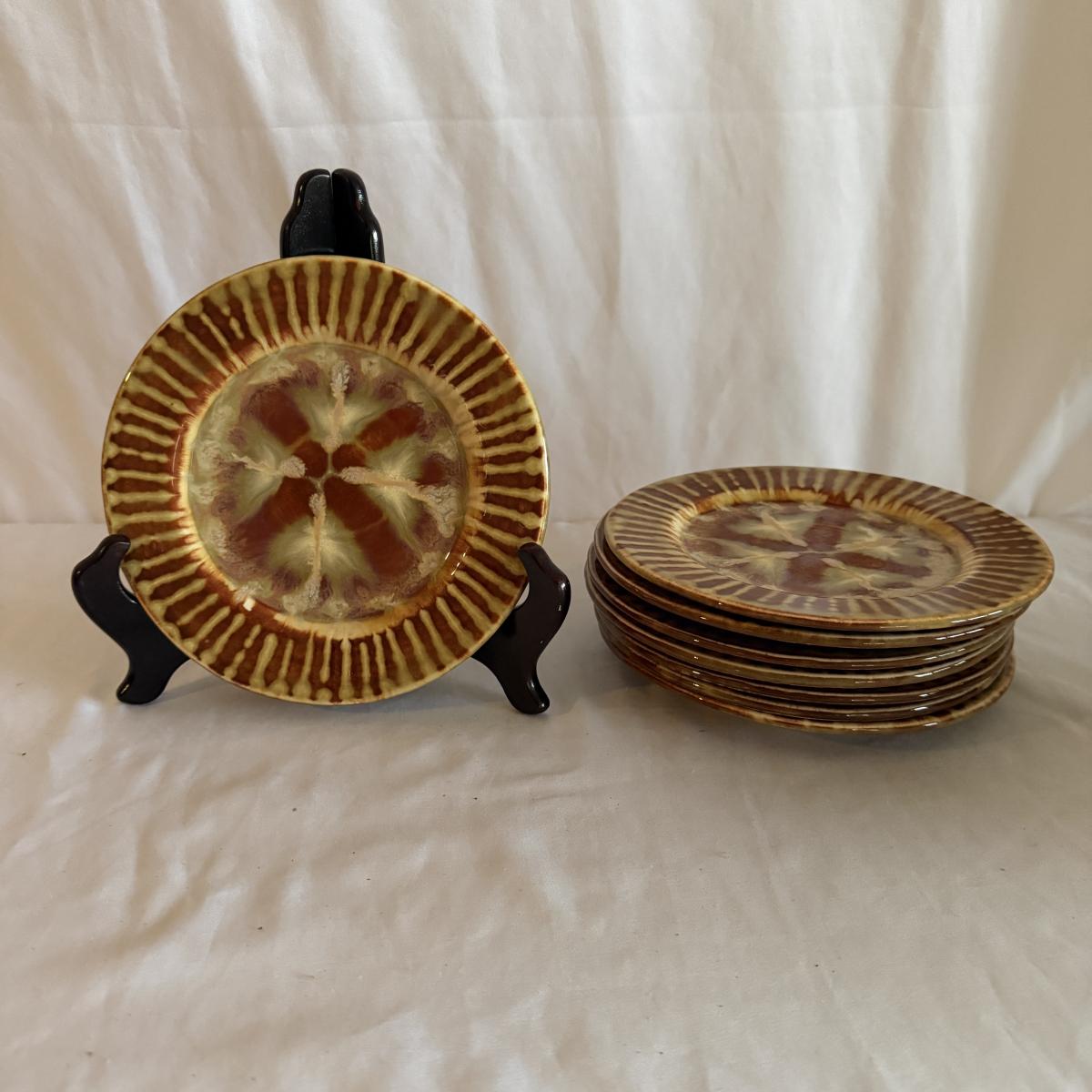 Lot contains signed Richie Watts handmade pottery dish set. Includes eight dinner plates, eight salad plates and eight bowls. Dinner plates measure 11”D.