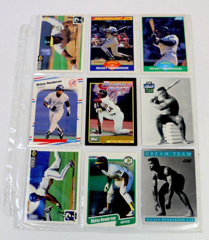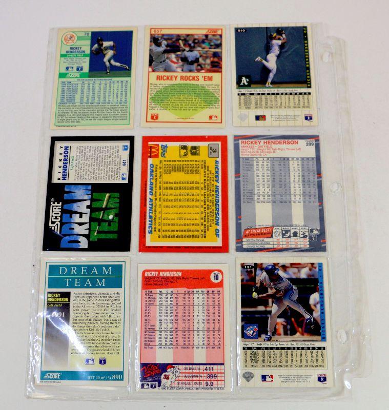 Nice set of 9 Baseball Cards featuring Baseball Star Rickey Henderson