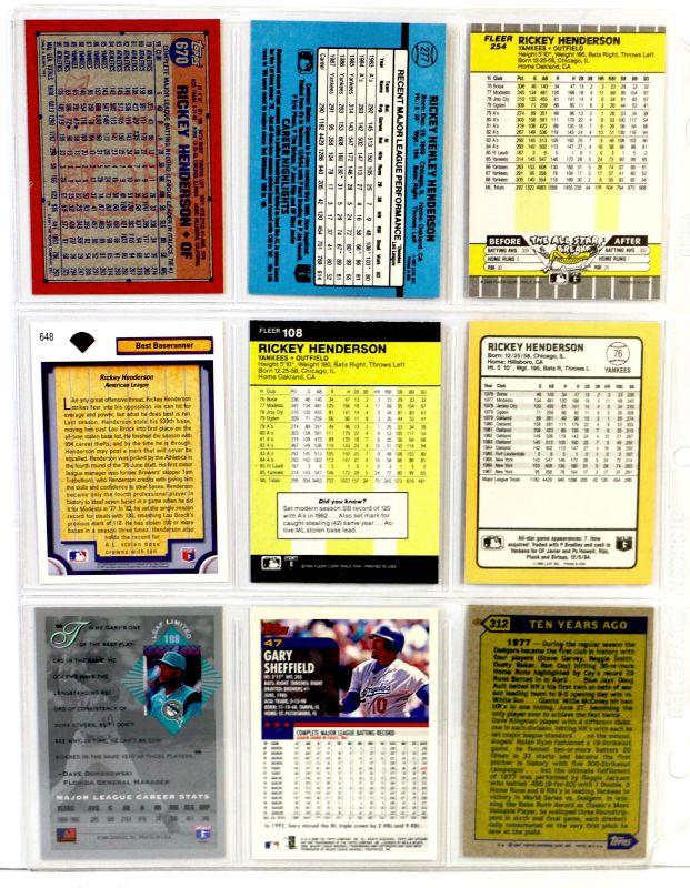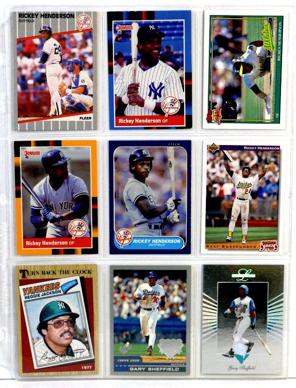 RICKEY HENDERSON Reggie Jackson Gary Sheffield BASEBALL CARDS SET OF 9 - EX/MINT