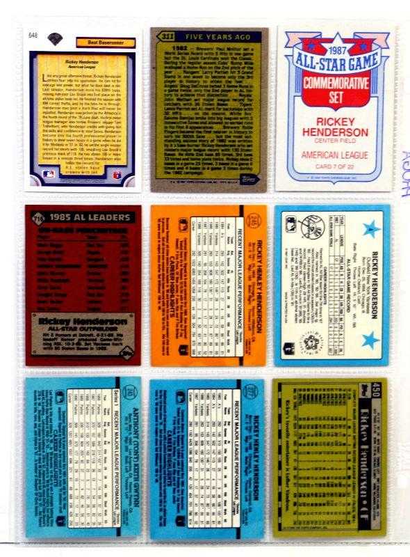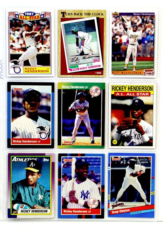 RICKEY HENDERSON Tony Gwynn BASEBALL CARDS SET OF 9 - MINT