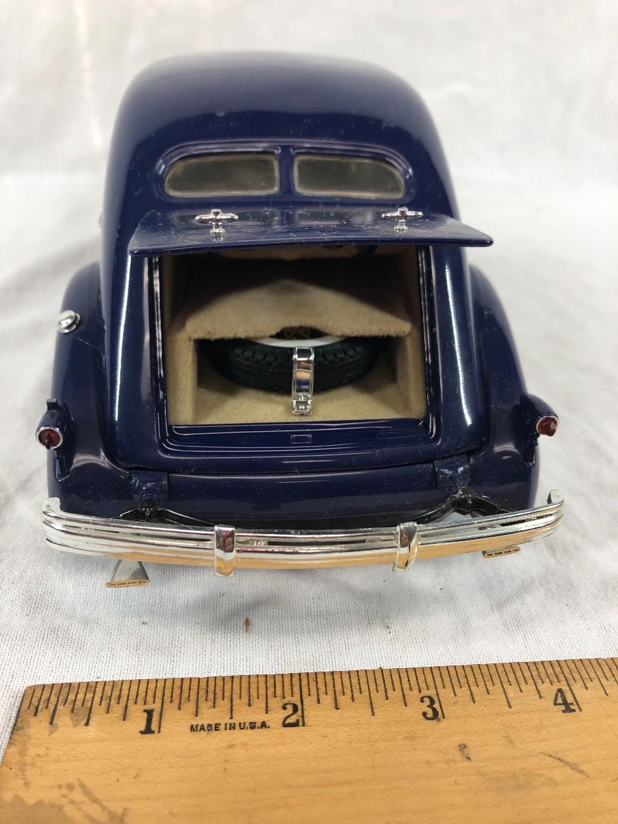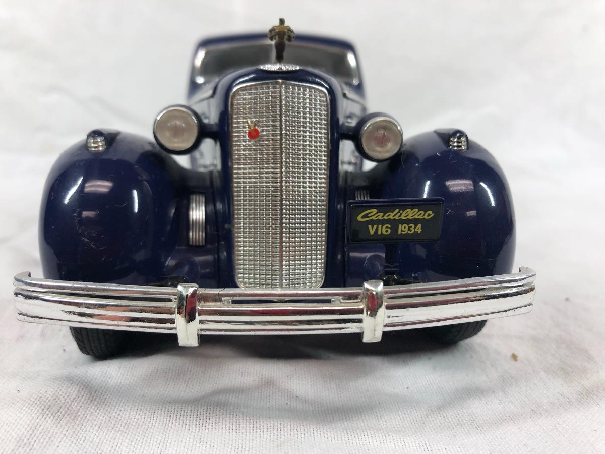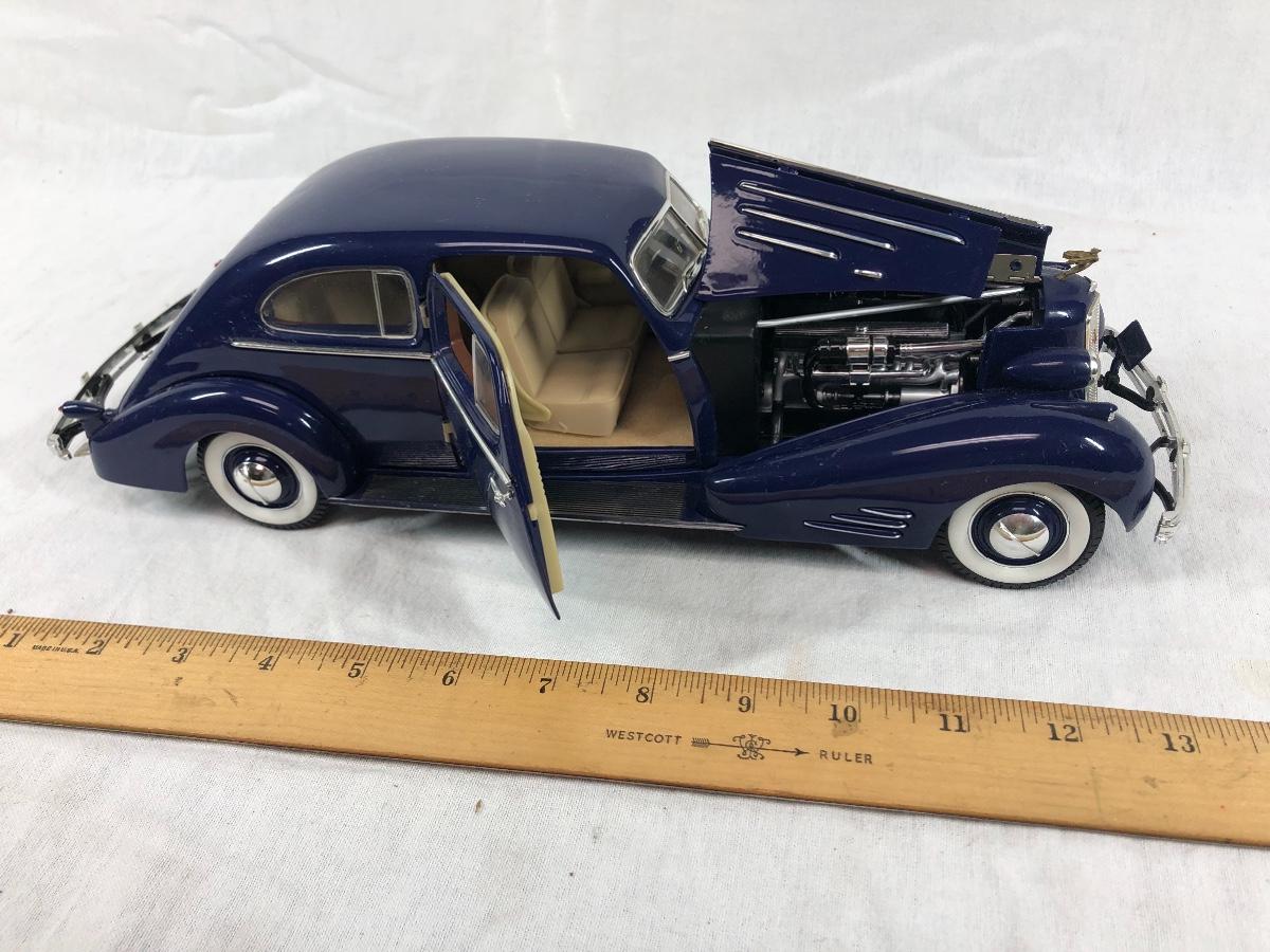Ricko diecast scale model 1934 Cadillac V16 coupe. Dark blue color. 1:16 scale. Displays great, Doors, hood, and trunk open. About 12" size.