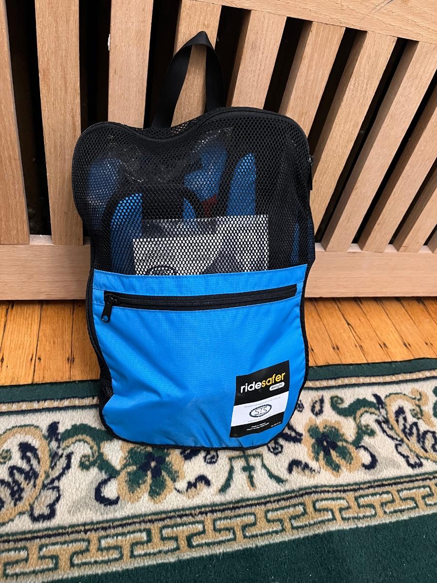 Brand new and never used. It is designed for travel, carpooling, and taxis, and can be easily packed into luggage or a backpack.