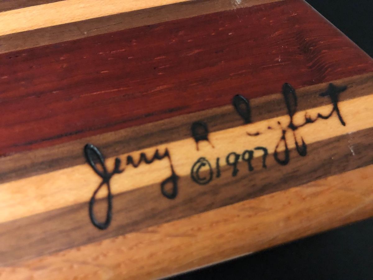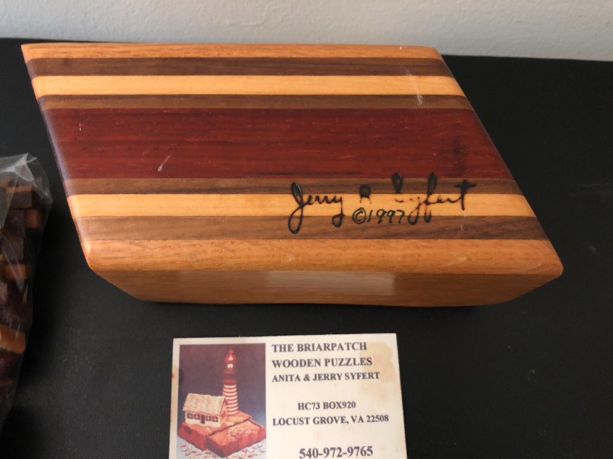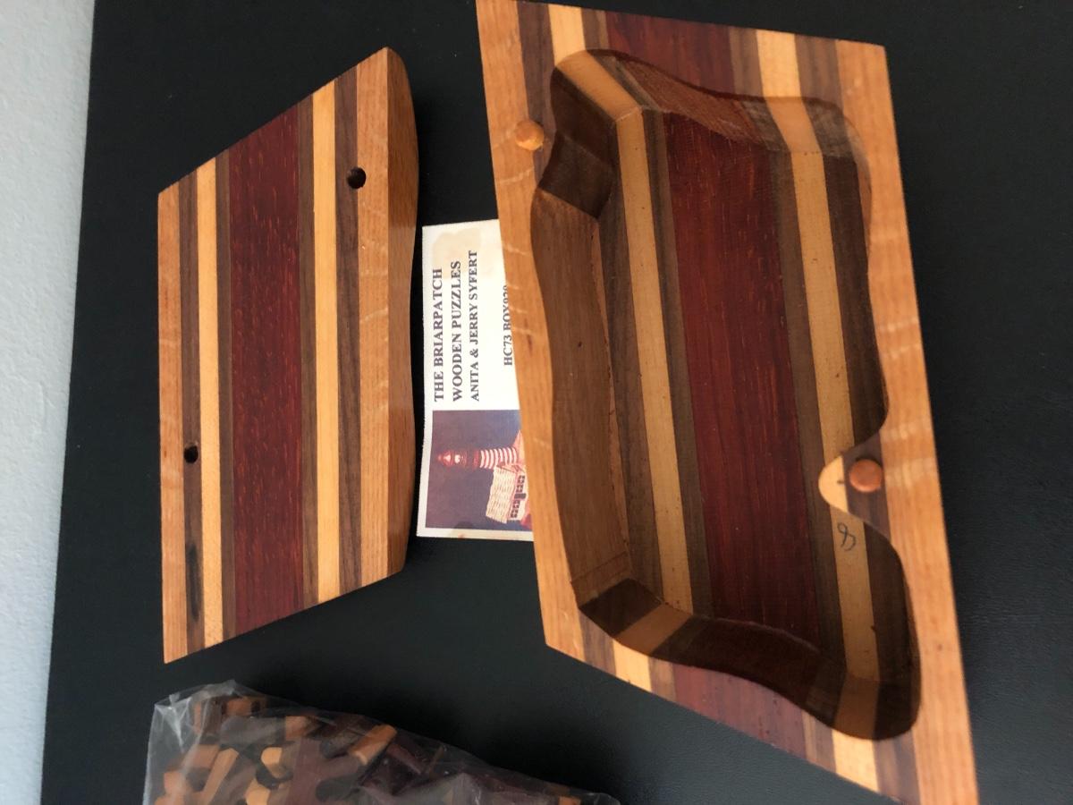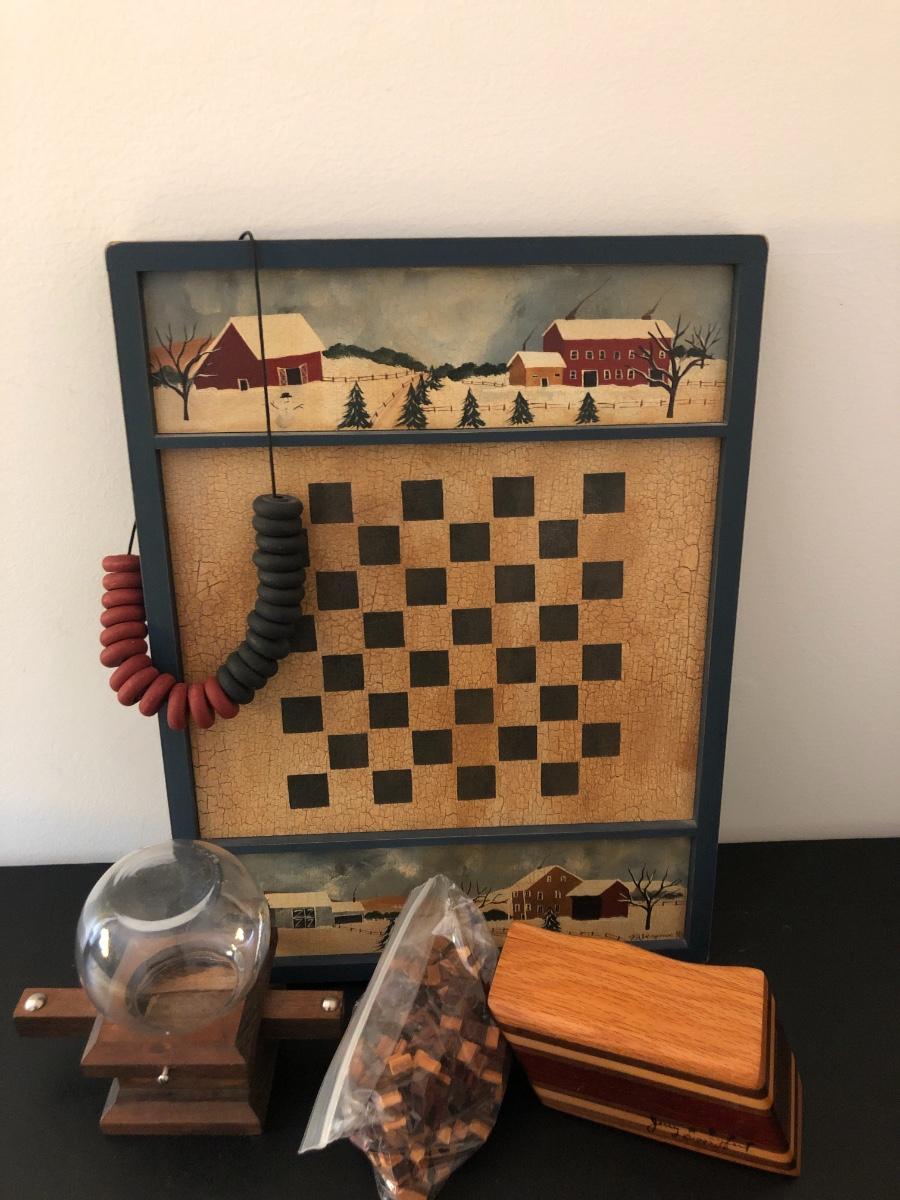 Ridge Hollow Folk Art Game Board, Briarpatch Wooden Puzzle Signed Box, & Glass Dispenser -Lot 121