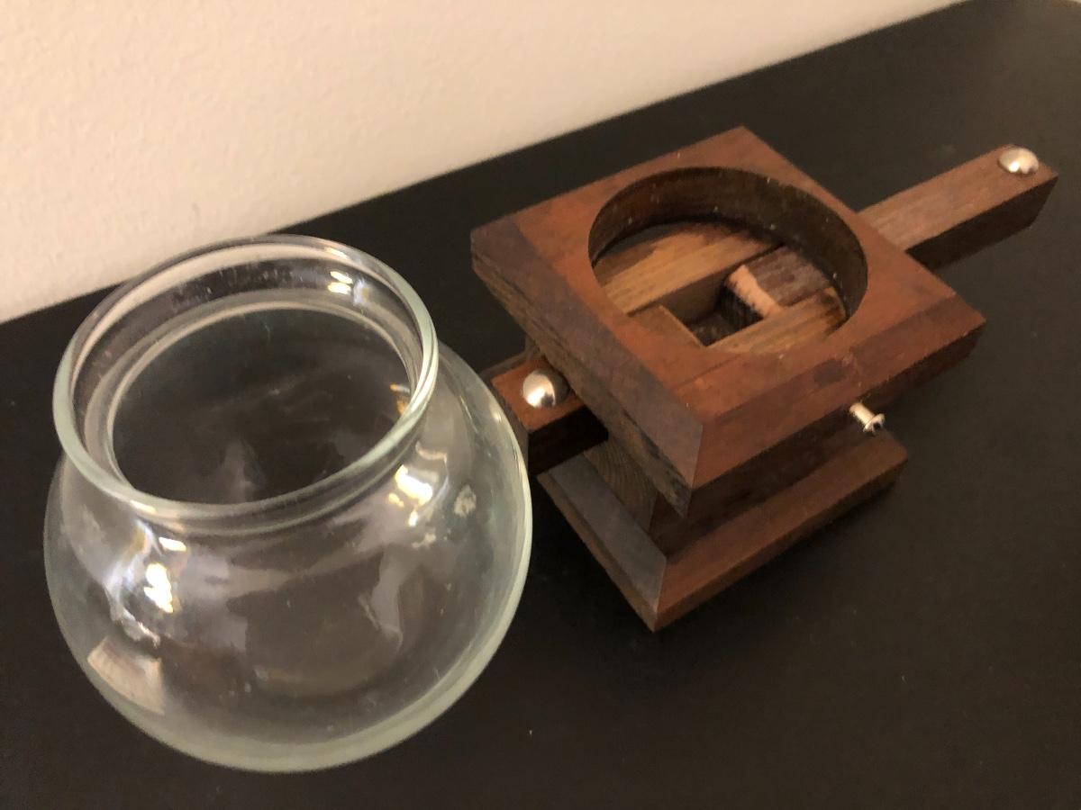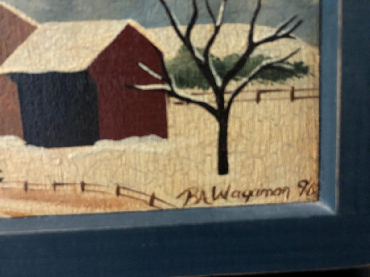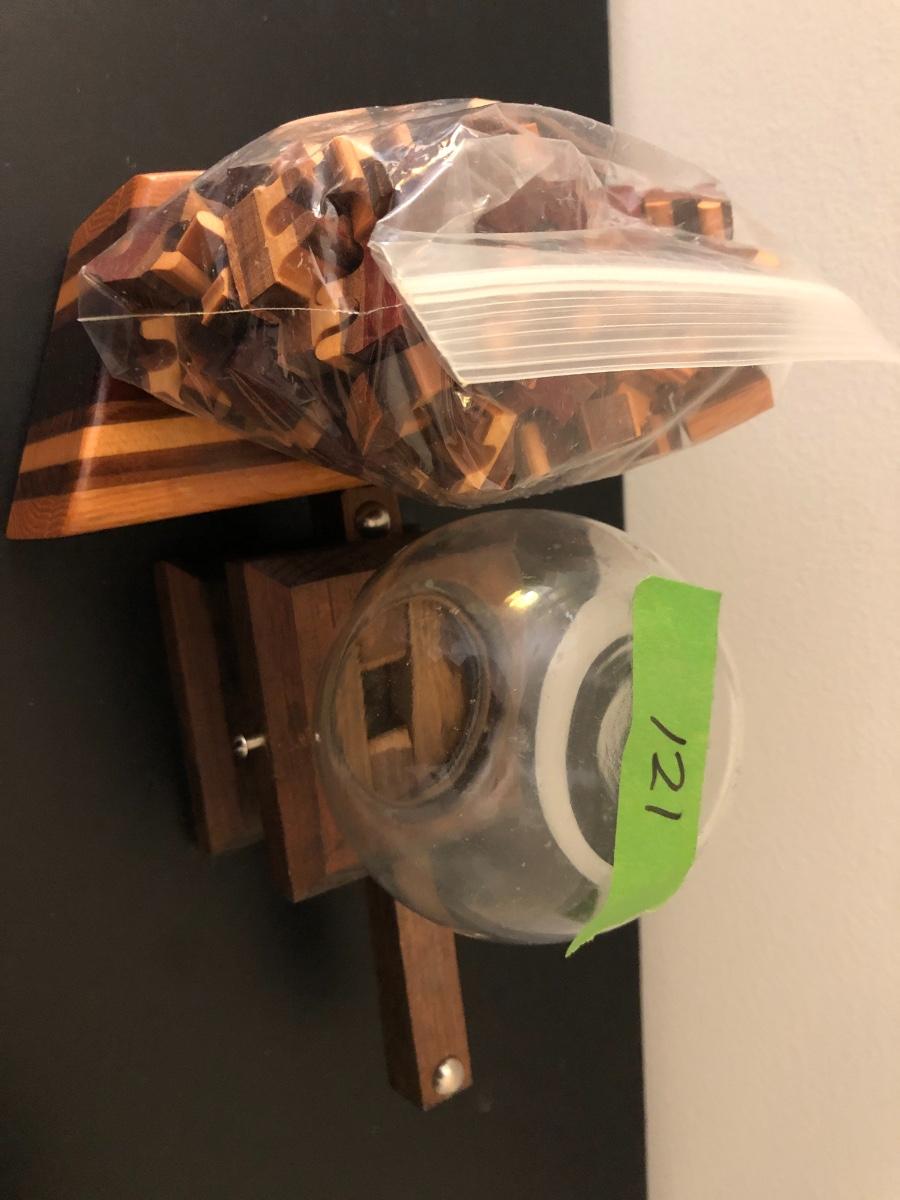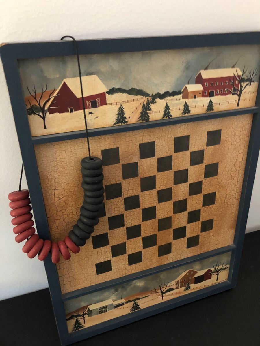 Ridge Hollow Folk Art Game Board, Briarpatch Wooden Puzzle Signed Box, & Glass Dispenser -Lot 121