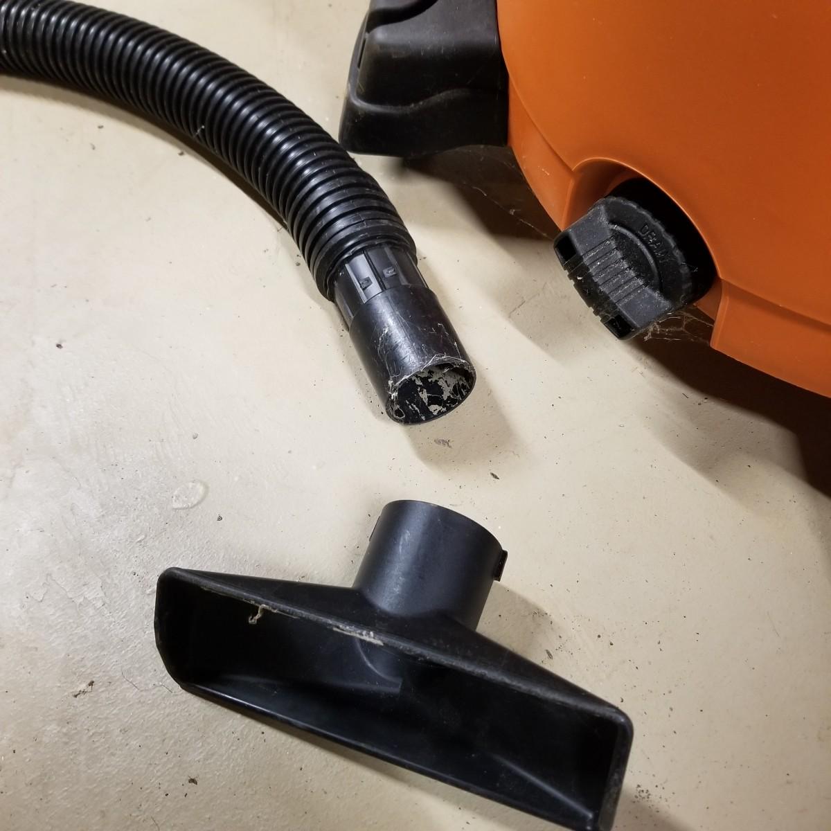 Roll about shop vac with six foot flex hose, 7" floor nozzle and two 20" extension tubes. 5.0 peak hp, has sixteen foot cord, canister filter and collection bag. 23" x20"x26". Tested, works. Local pickup only.