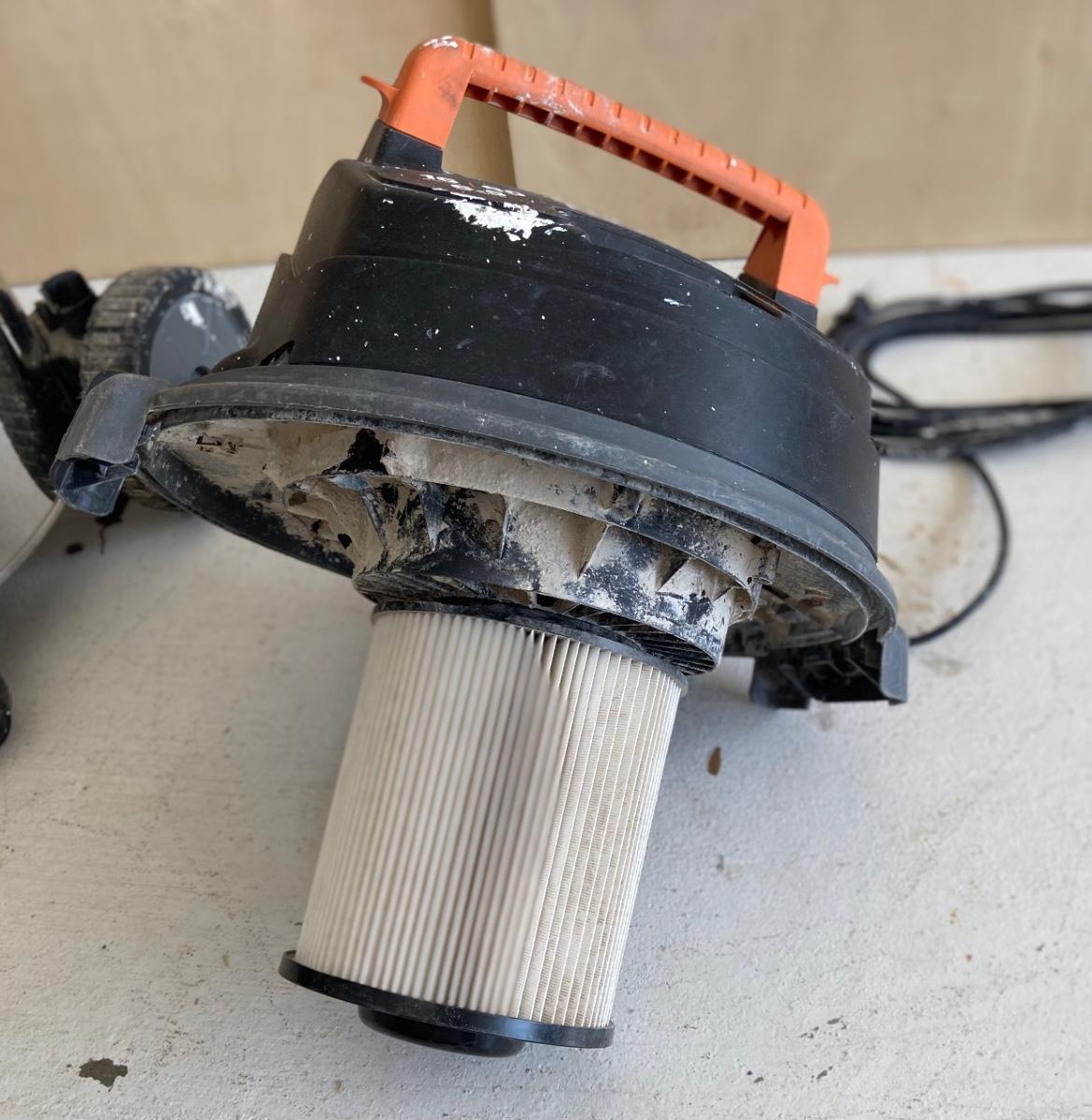 Used shop vac in good condition. One wheel will come off due to axle not being secure on that side as shown in picture. Please review all pictures as they are part of item description.