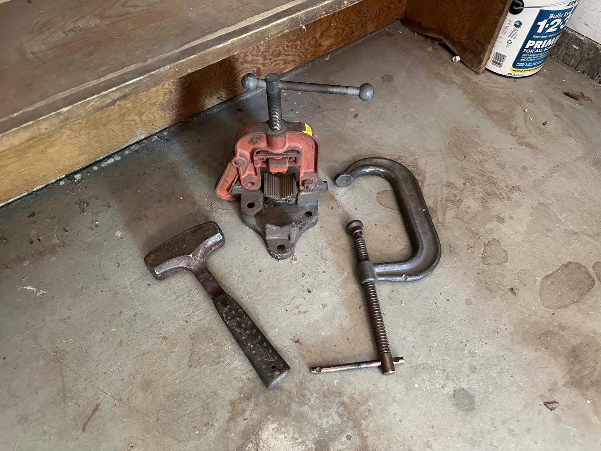 RIDGID PIPE VISE, SLEDGE HAMMER AND C-CLAMP