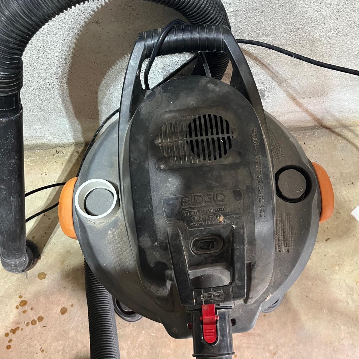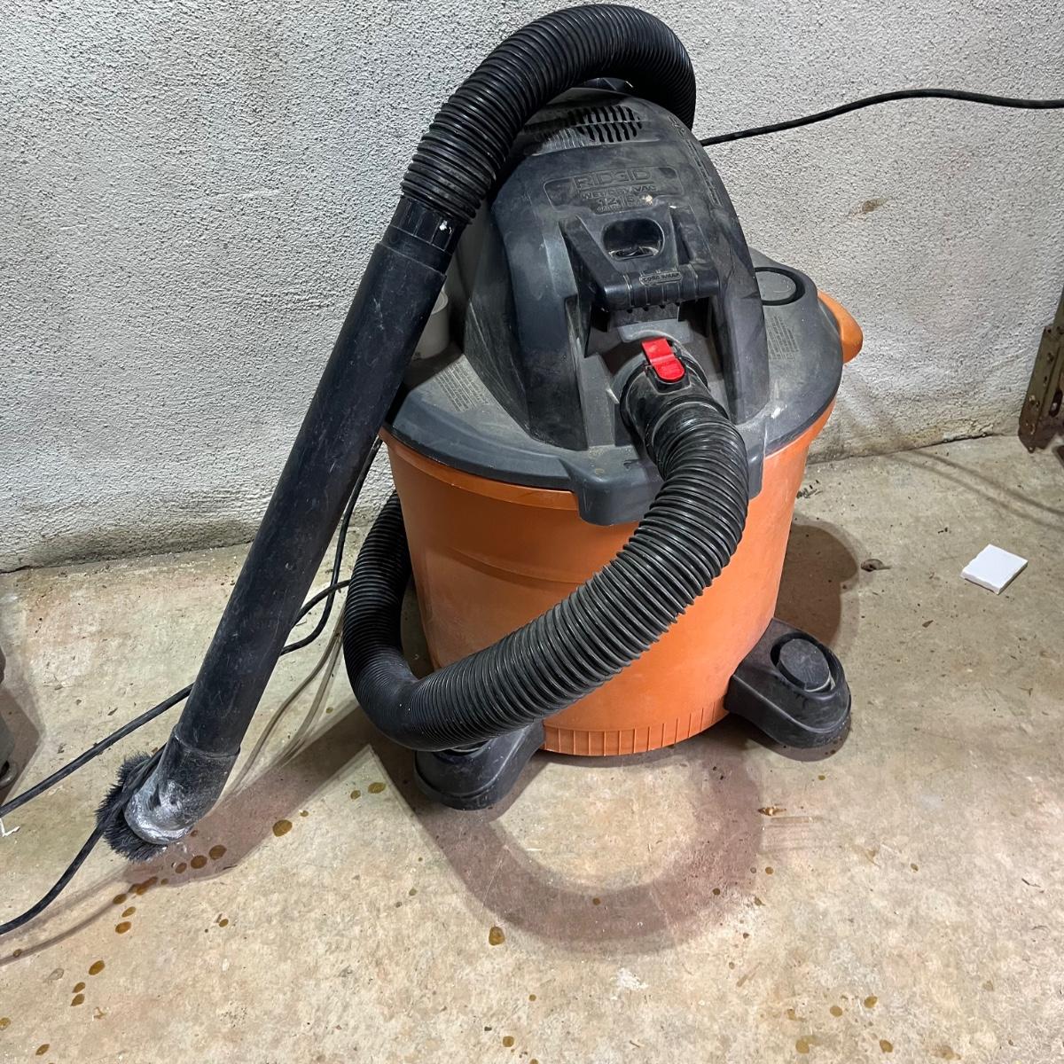 Lot includes a Ridgid 12 gallon with 6 HP wet dry vacuum that powered on when plugged in. Filter could use a cleaning or replacement.