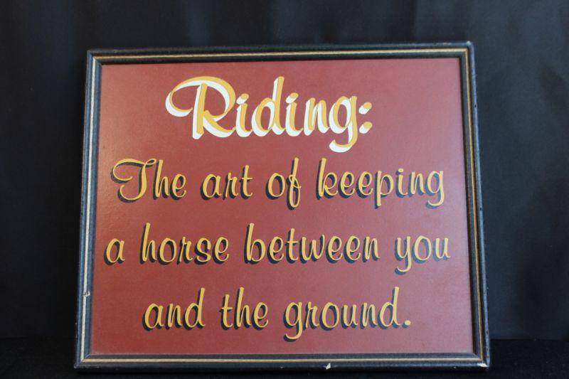 Riding Quote wall hanging. Some wear to the frame edges.