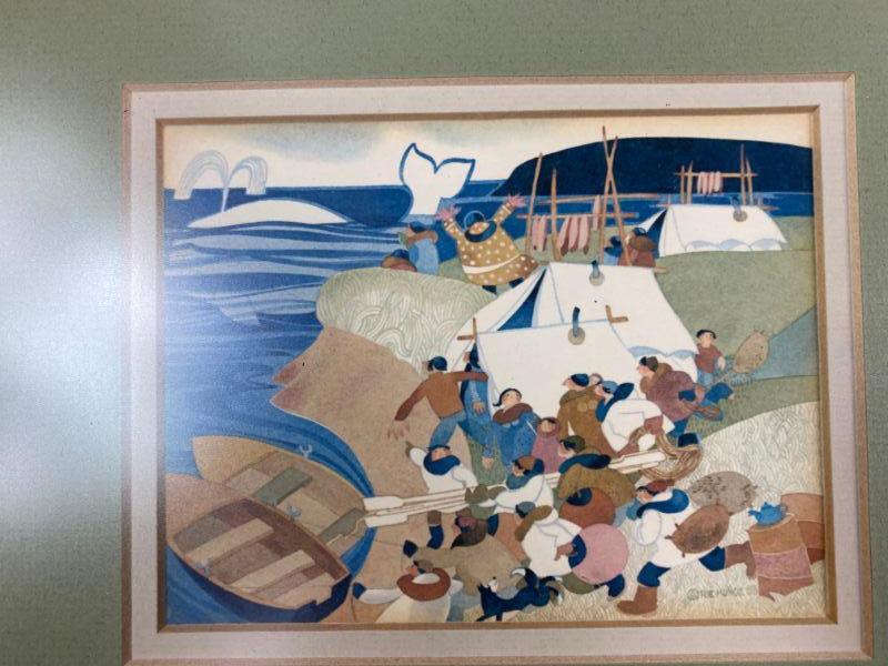 RIE MUNOZ "WHALING CAMP" 1983 10½" x 9½" FRAMED 5" x 6" PRINT