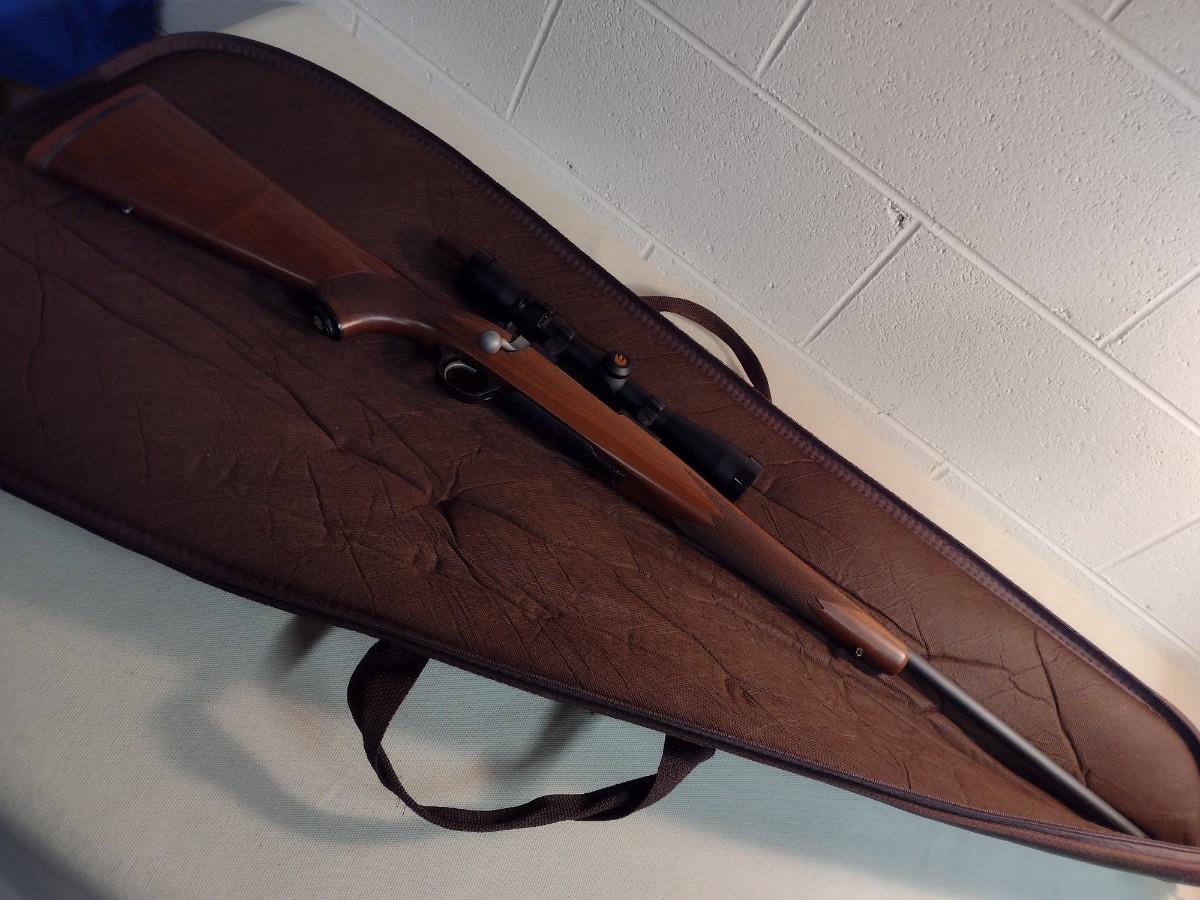 Ruger M-77 Hawkeye .223 Rifle 23" Barrel with Scope and Carry Bag (#13). Please know your state laws prior to bidding on firearms. No interstate transport of firearms will be allowed. Buyer must have NC Concealed Permit or Pistol Purchase Permit to buy handguns and preferred for long guns as well. Otherwise, buyer must be able to pass an FBI 4473 background check and be at least 21 years old. Multiple handgun purchases will require an ATF 3310 form for reporting to local law enforcement and ATF (long guns are excluded. Out-of-state buyers of firearms may have shipping to his/her FFL of choice and is responsible for all shipping and transfer costs. Due to the recent change in gun purchase laws in age restrictions, we are requiring that no bidder be under the age of 21 for any hand or long gun purchase.