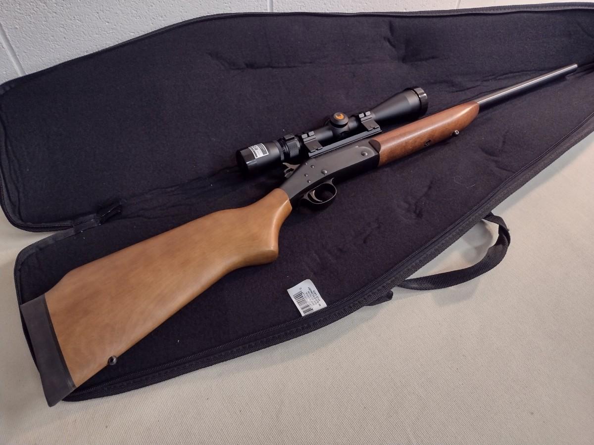Harrignton & Richardson .223 Rifle with Scope 22" Barrel (#22). Please know your state laws prior to bidding on firearms. No interstate transport of firearms will be allowed. Buyer must have NC Concealed Permit or Pistol Purchase Permit to buy handguns and preferred for long guns as well. Otherwise, buyer must be able to pass an FBI 4473 background check and be at least 21 years old. Multiple handgun purchases will require an ATF 3310 form for reporting to local law enforcement and ATF (long guns are excluded. Out-of-state buyers of firearms may have shipping to his/her FFL of choice and is responsible for all shipping and transfer costs. Due to the recent change in gun purchase laws in age restrictions, we are requiring that no bidder be under the age of 21 for any hand or long gun purchase..