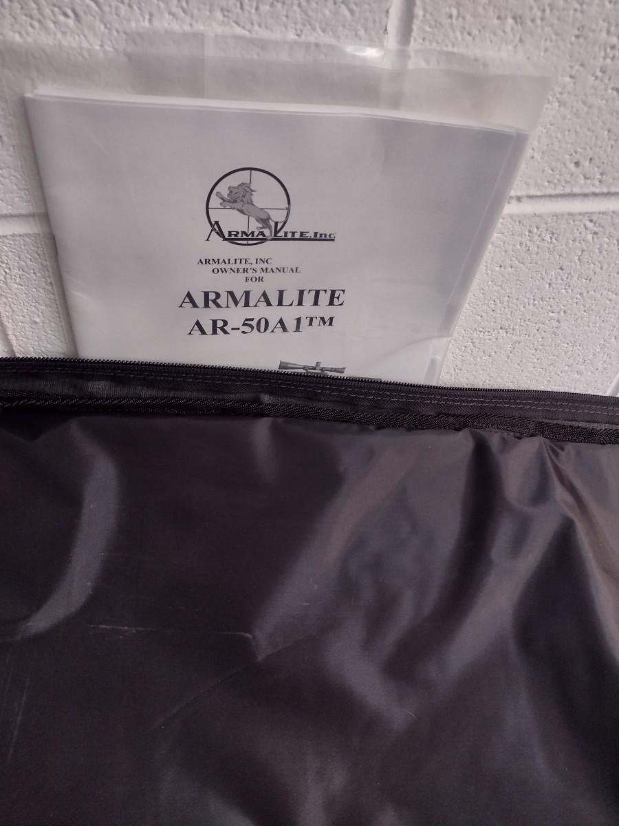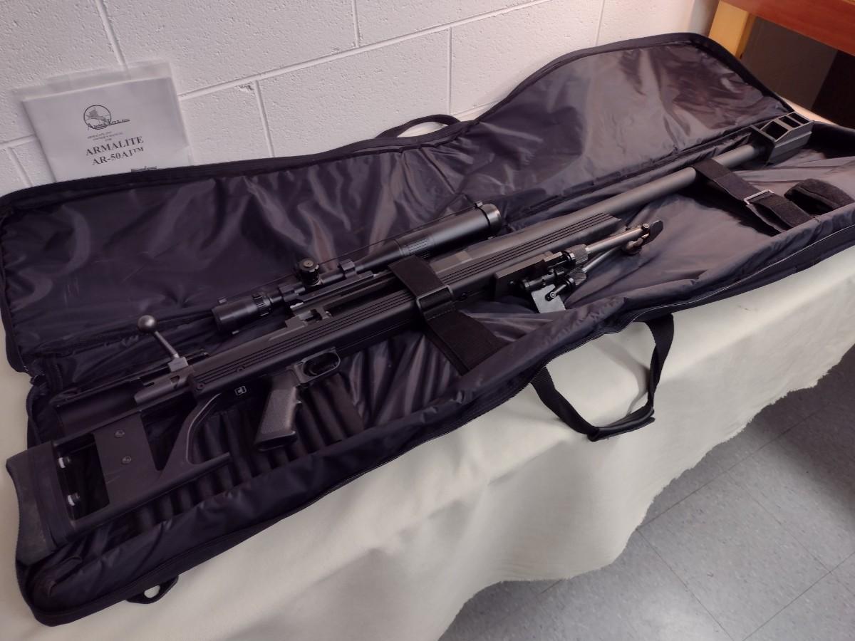 Armalite AR-50A1 .50 Caliber Single Shot Rifle with Bipod and Hardcase (#27). Please know your state laws prior to bidding on firearms. No interstate transport of firearms will be allowed. Buyer must have NC Concealed Permit or Pistol Purchase Permit to buy handguns and preferred for long guns as well. Otherwise, buyer must be able to pass an FBI 4473 background check and be at least 21 years old. Multiple handgun purchases will require an ATF 3310 form for reporting to local law