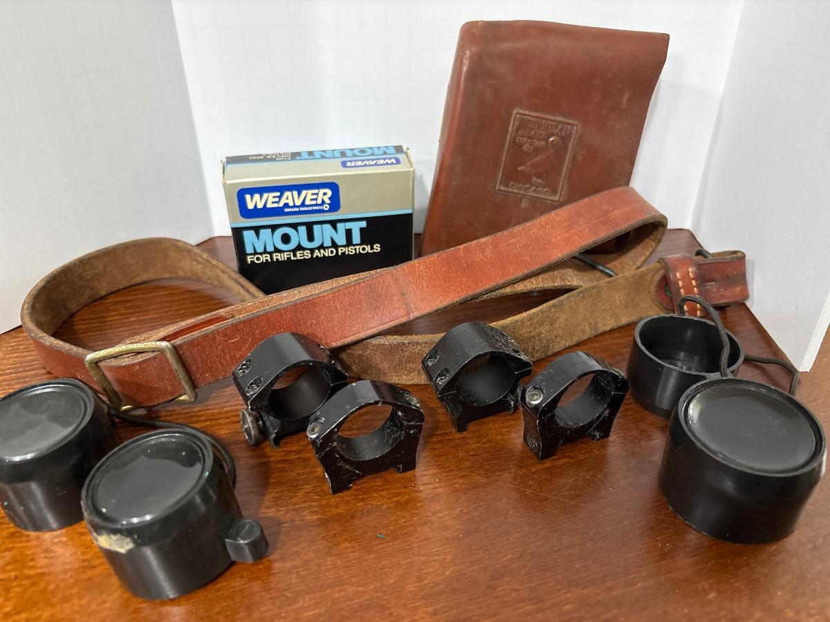NIB mount, plus 2 other sets, rifle strap & guard, binocular lens covers
