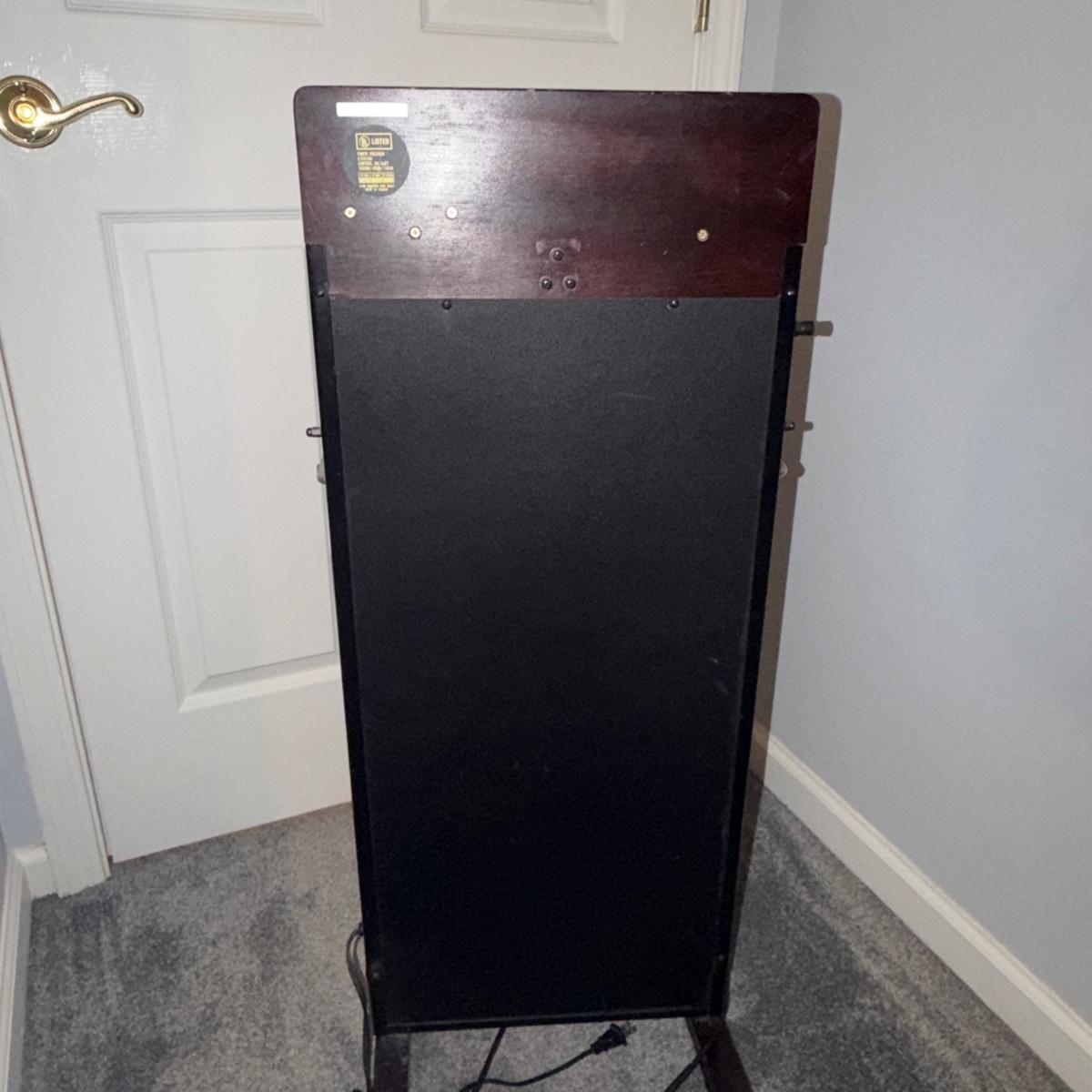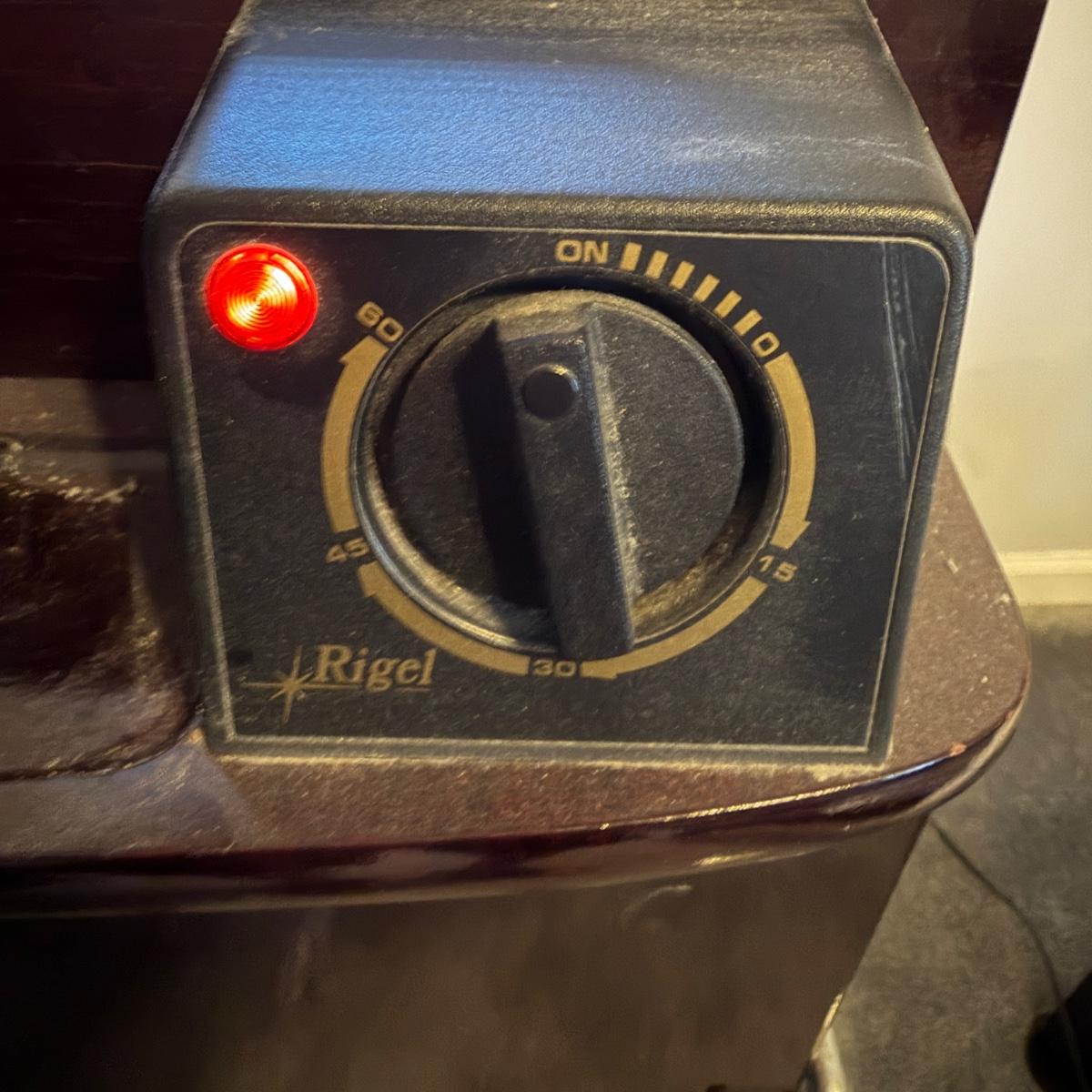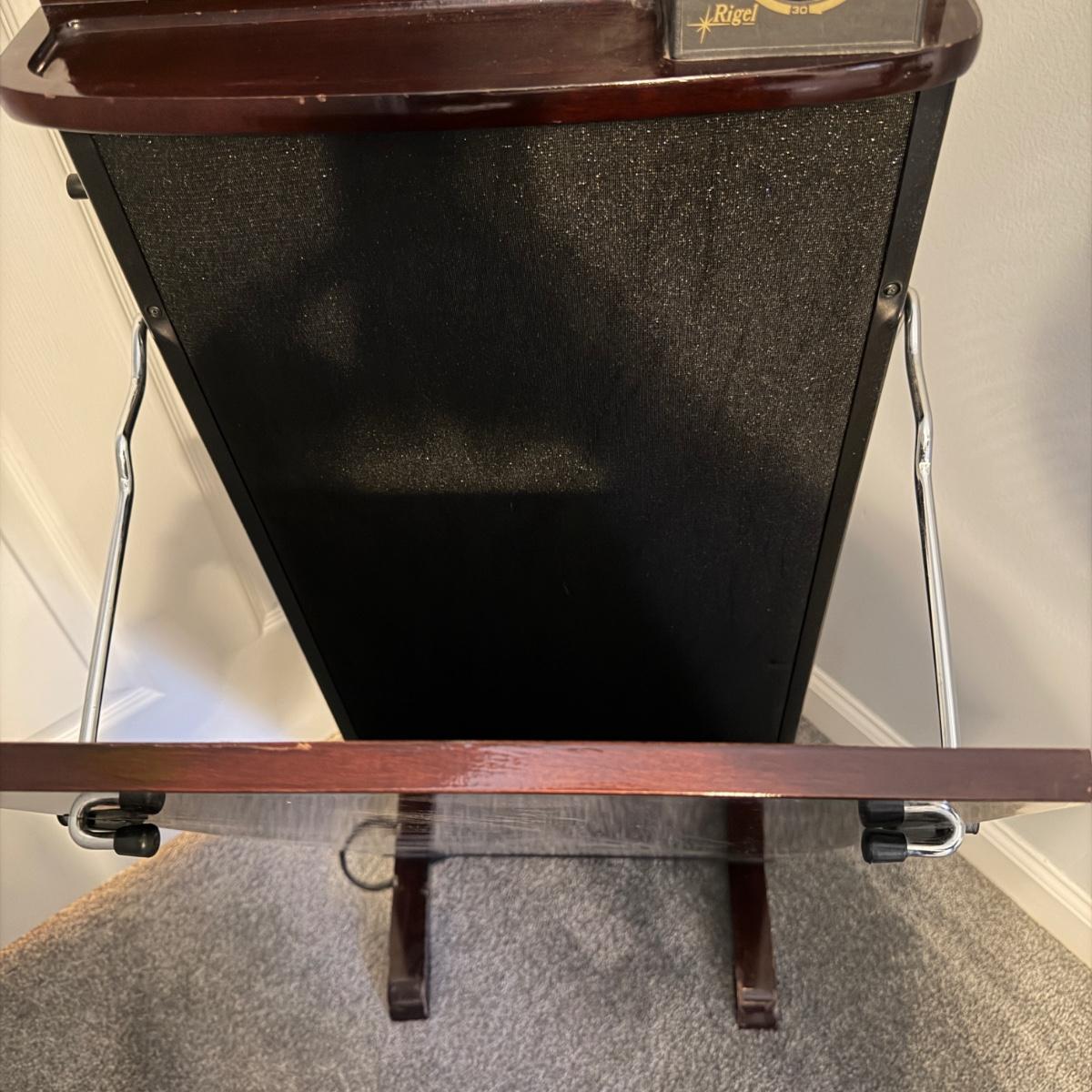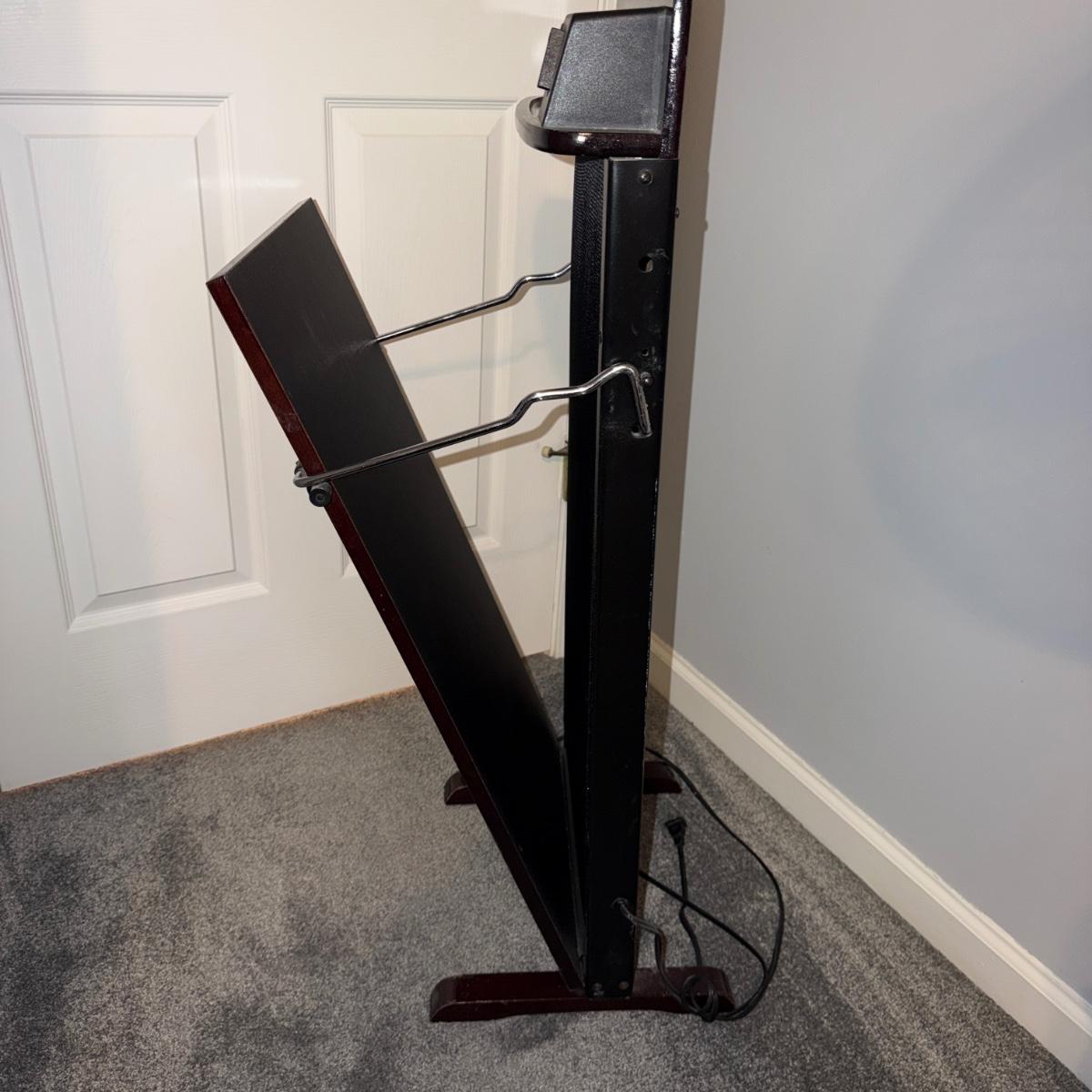Lot includes a Rigel wooden electric trouser press. Press measures 16.5” x 12” x 38”H.