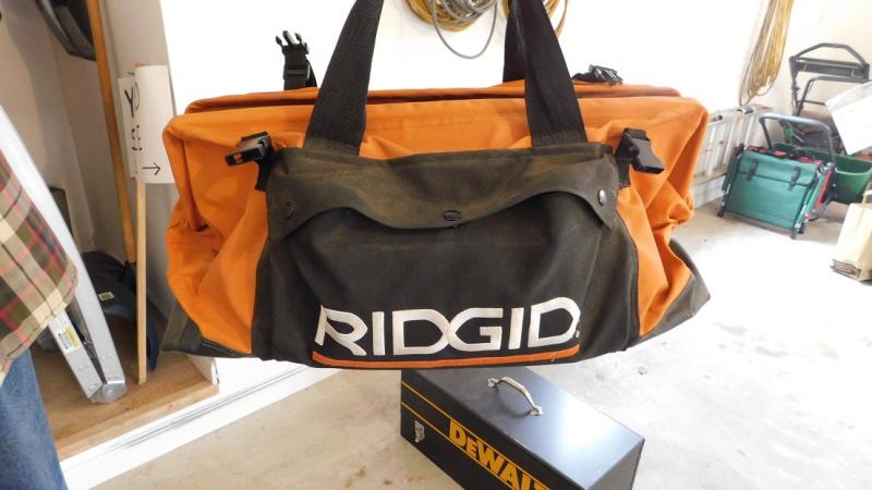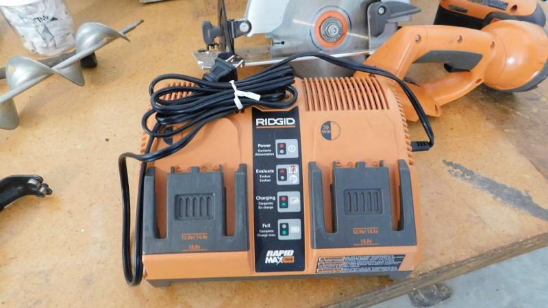 Rigid 18V Power Tool Set Skill Saw, Drill, Flashlight, 1 Battery, and Charger includes carry bag. In working condition