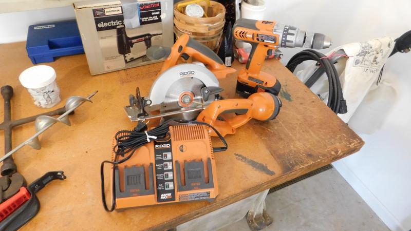 Rigid 18V Power Tool Set Skill Saw, Drill, Flashlight, 1 Battery, and Charger