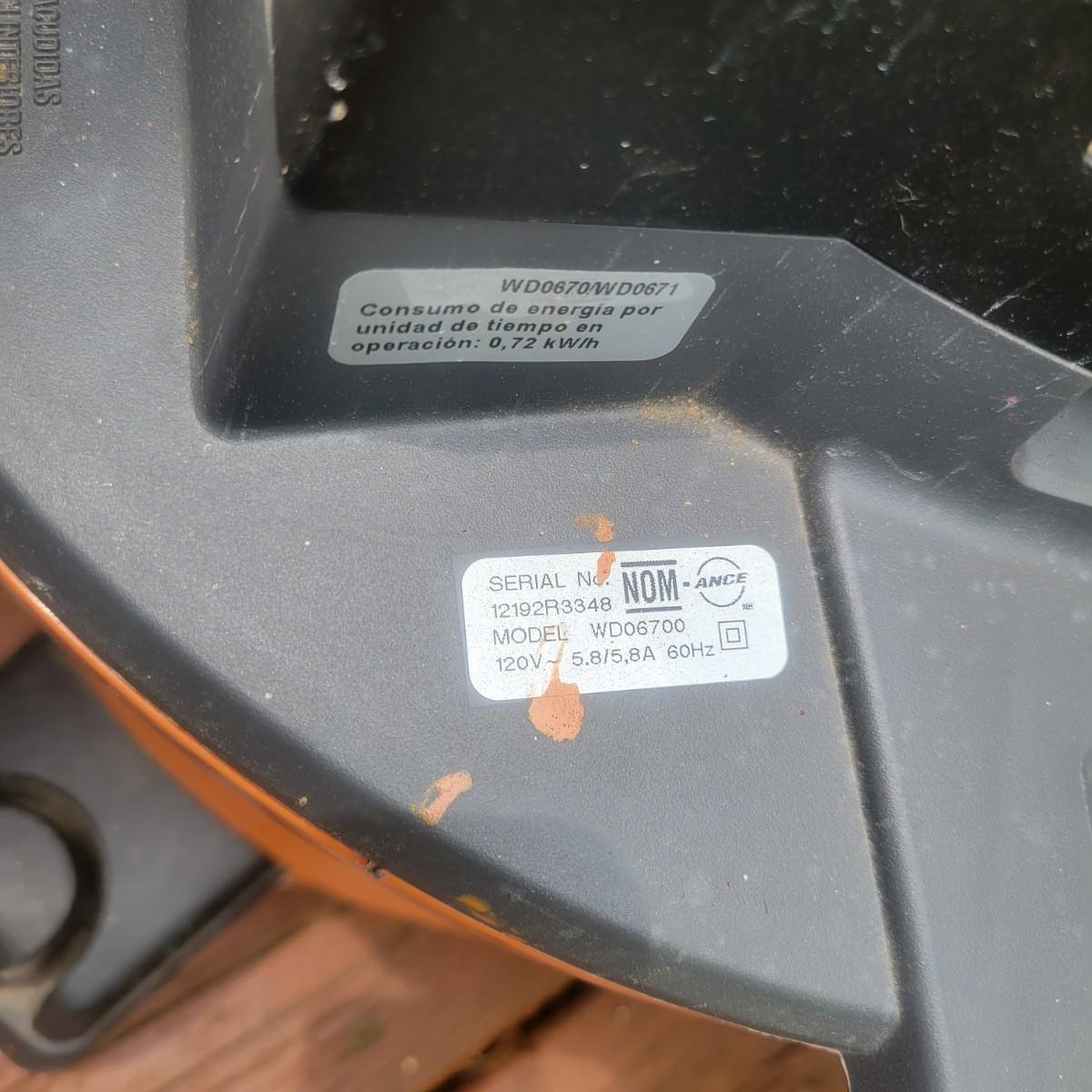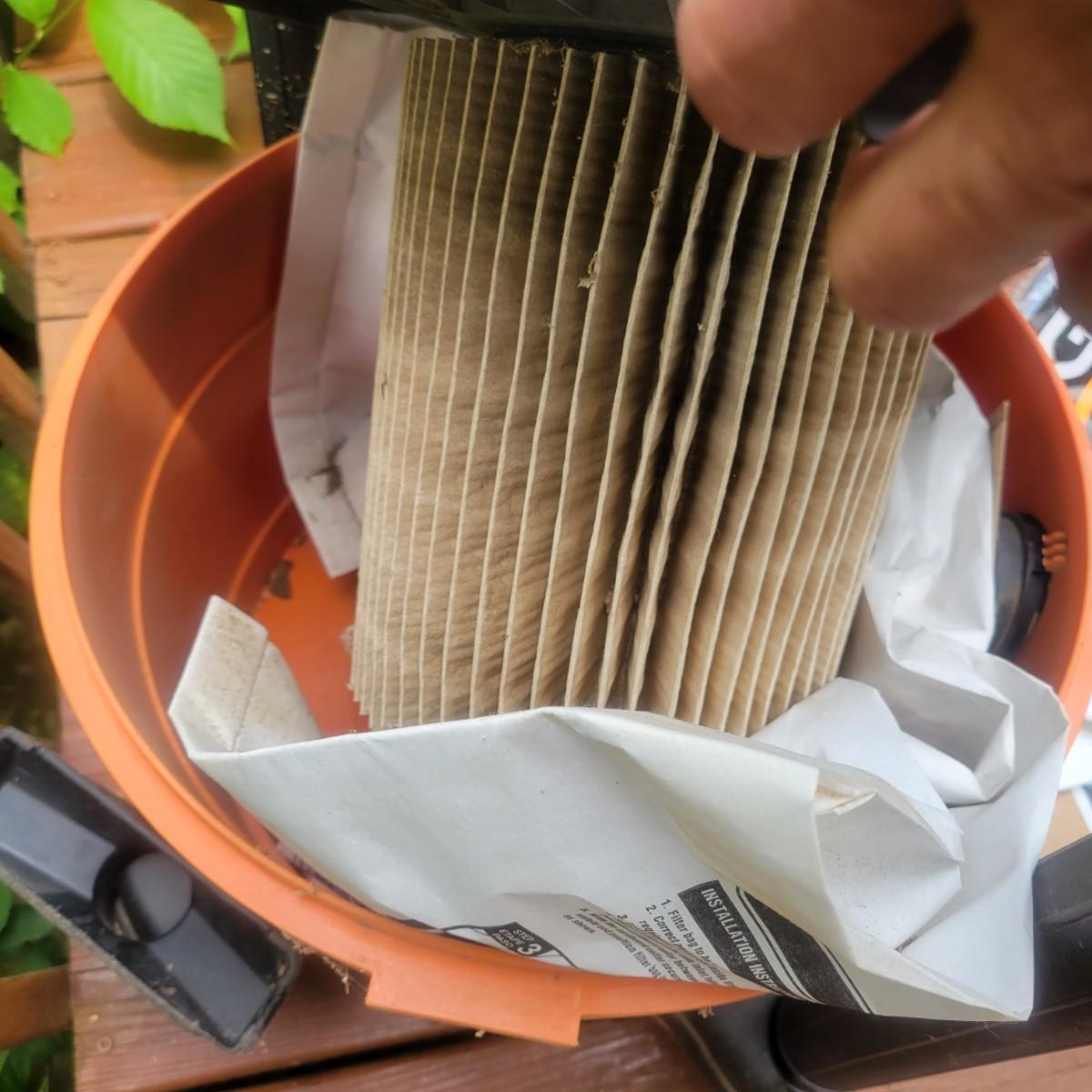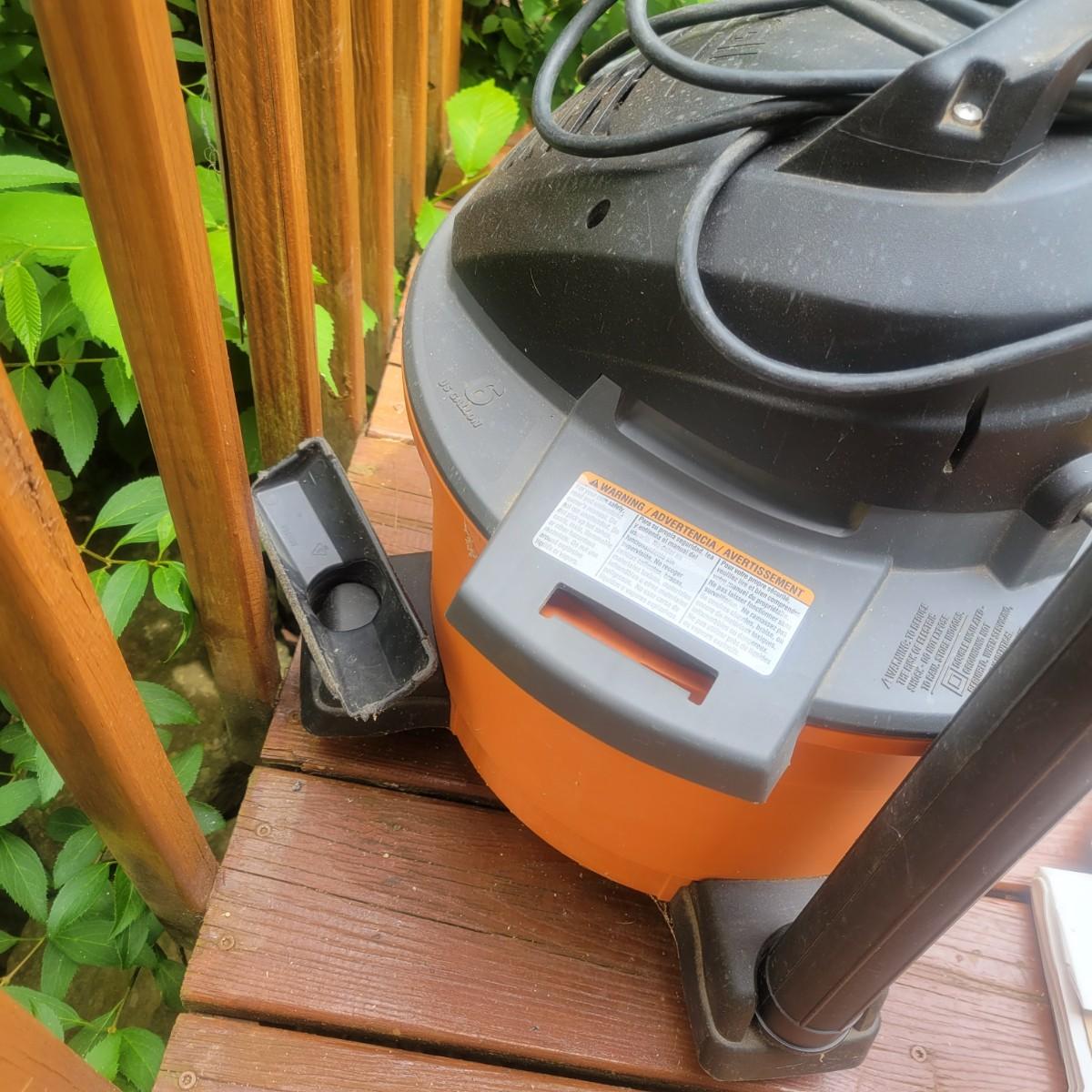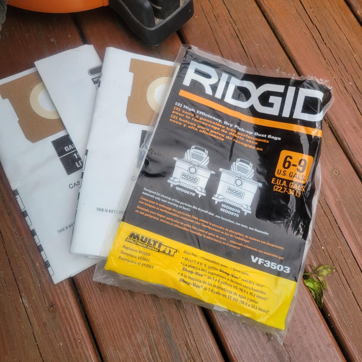 A Rigid 6gal wet/dry vac that powered on when plugged in. This vac comes with a hose extension, a head attachment and three extra bags. Measures approximately 20"D x 20"H. Local pickup only