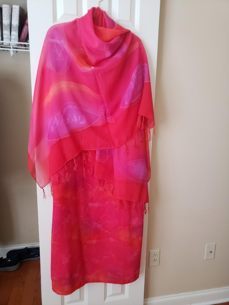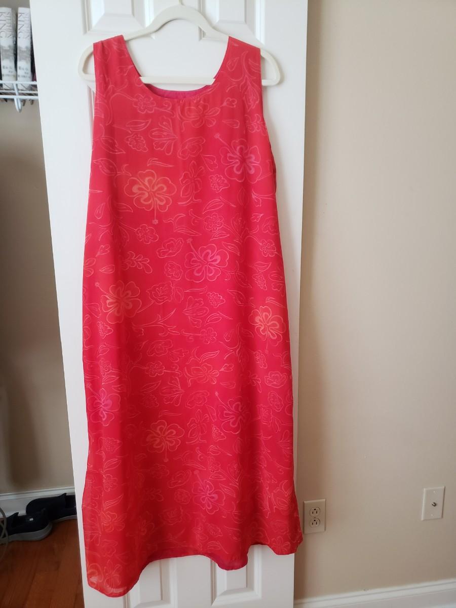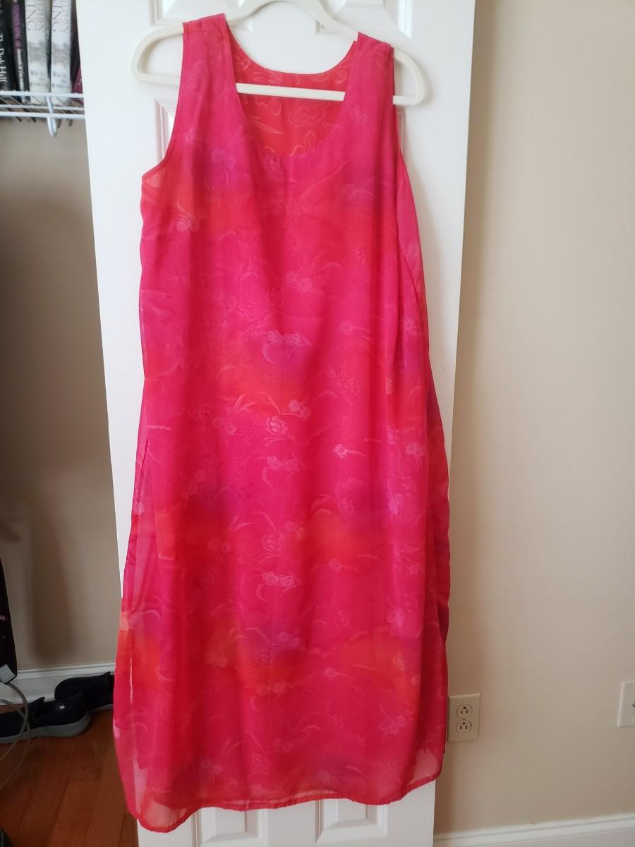 Rima Beachwear reversible sleeveless dress with scarf/wrap. Magenta & red colors. Size L.