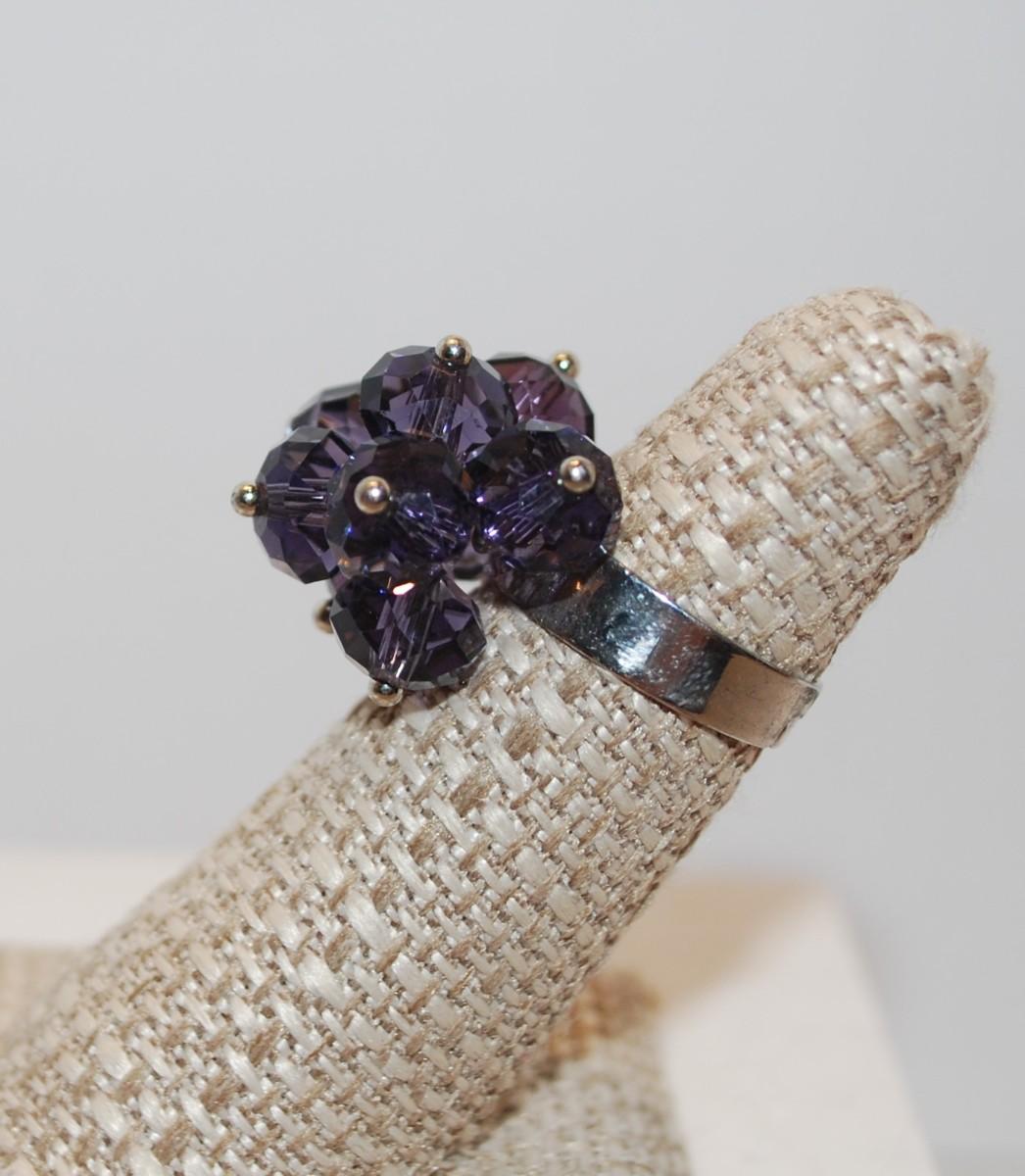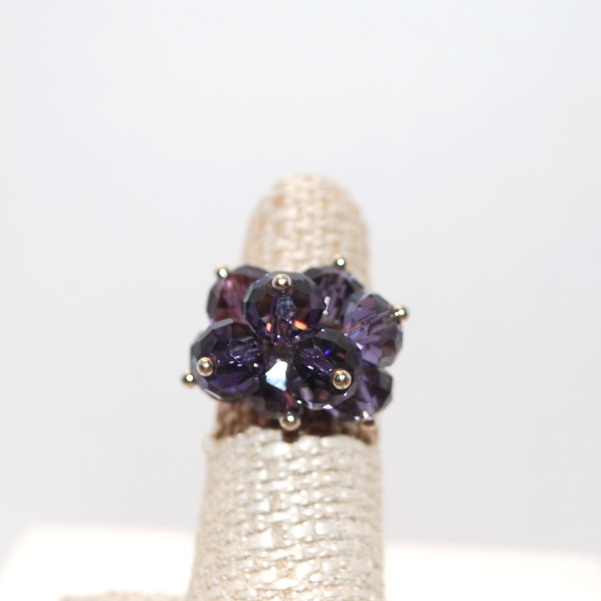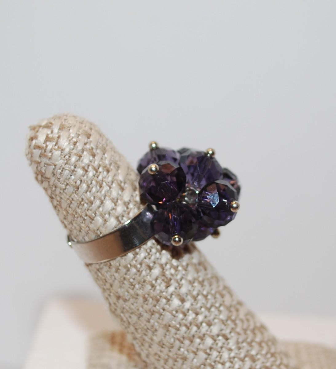 Ring Deep Purple Loose Stone Cluster on Silver Tone Split-Band Setting (5.8g) Size: 6