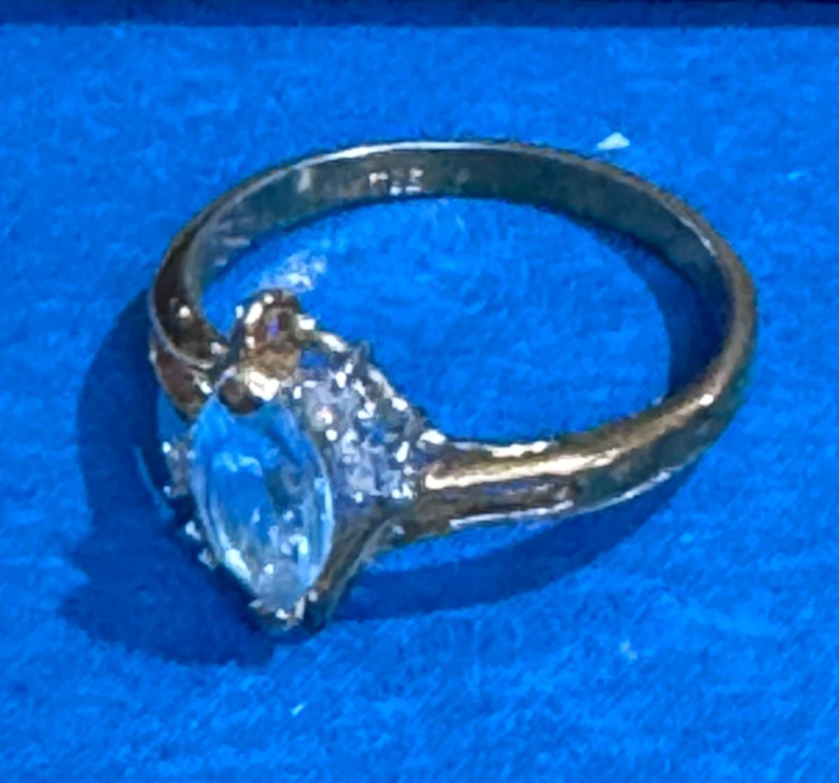 ring featuring a prominent aquamarine gemstone. The stone appears to be a light blue, which is characteristic of aquamarine, often associated with the serene colors of the ocean.