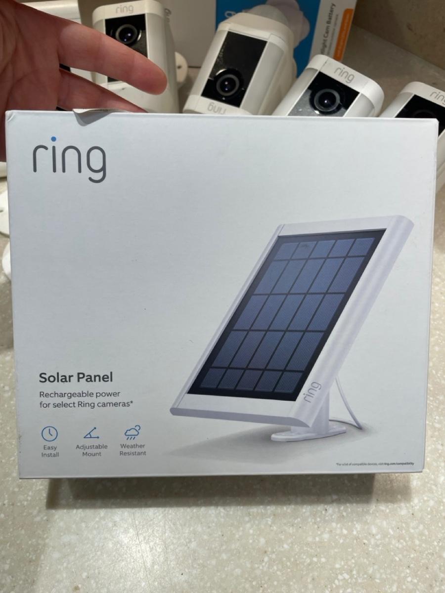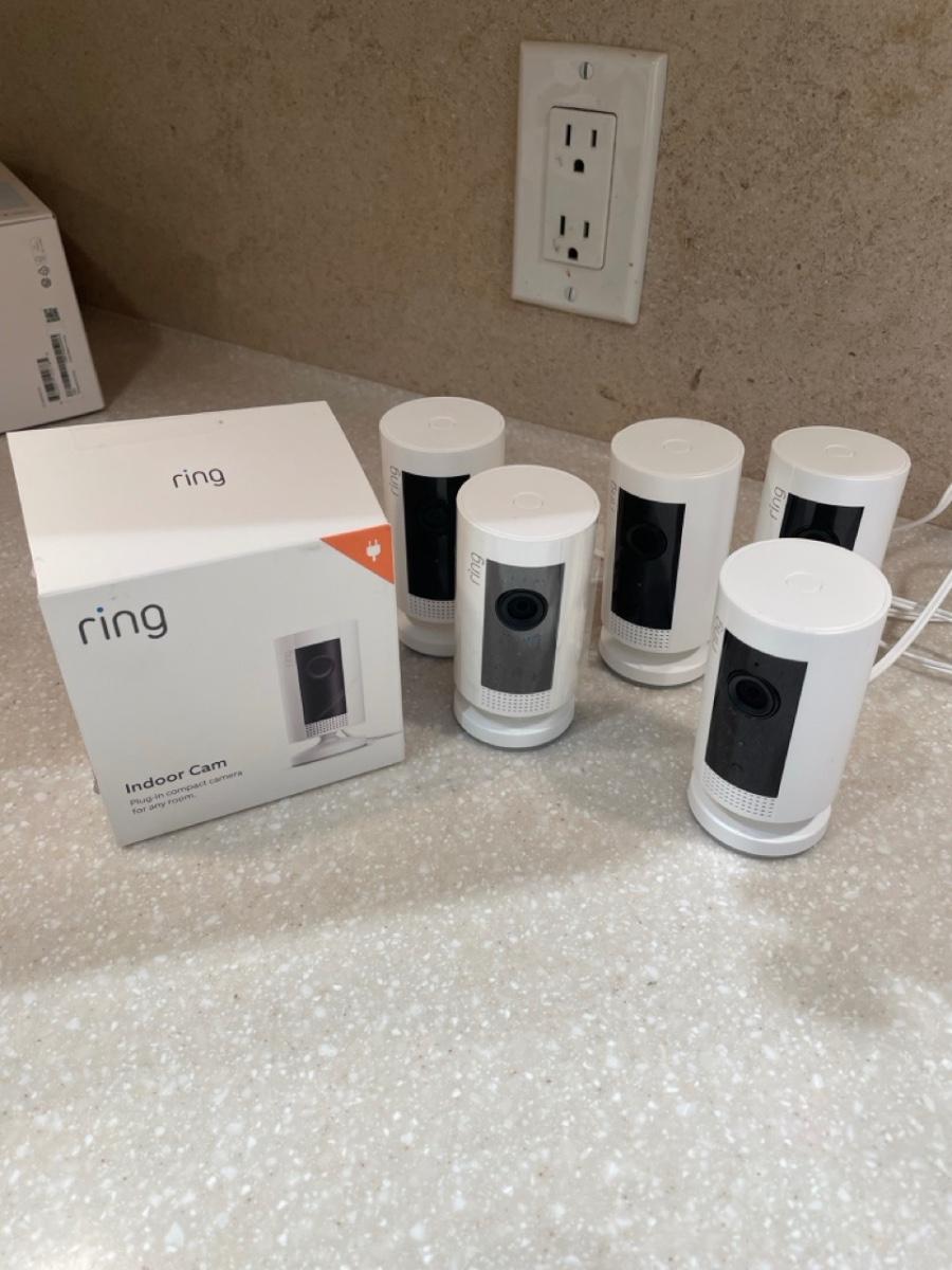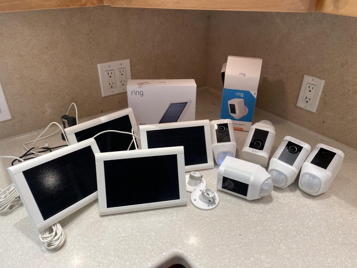 5 indoor cameras, 5 outdoor cameras and 4 solar panels. All in good condition.