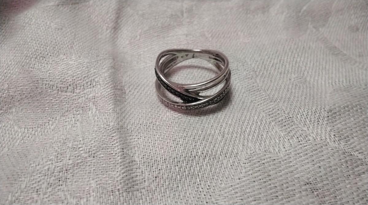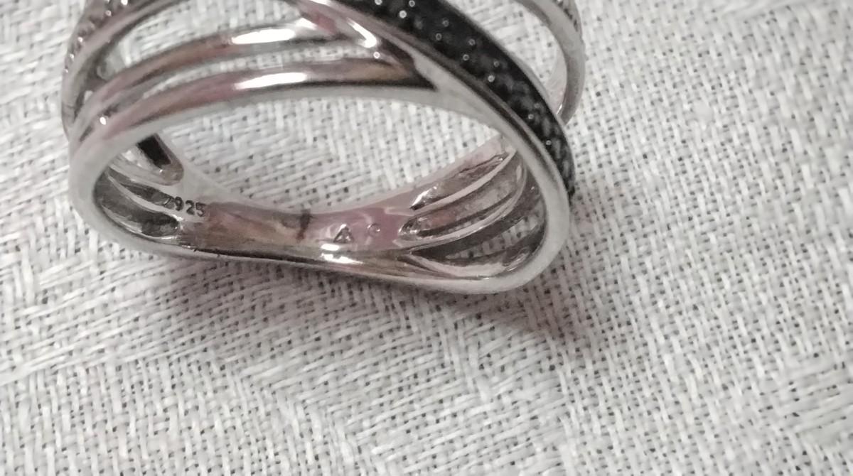 Beautiful Diamond and Black Diamond 925 Ring Size 6.5
