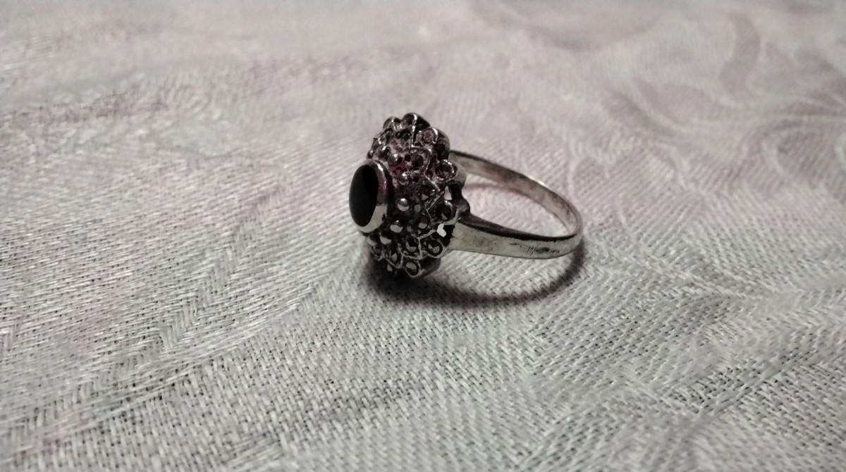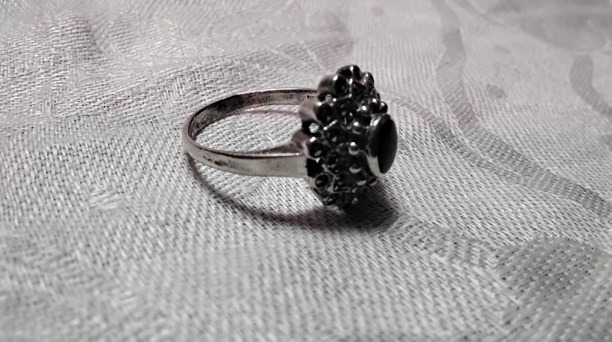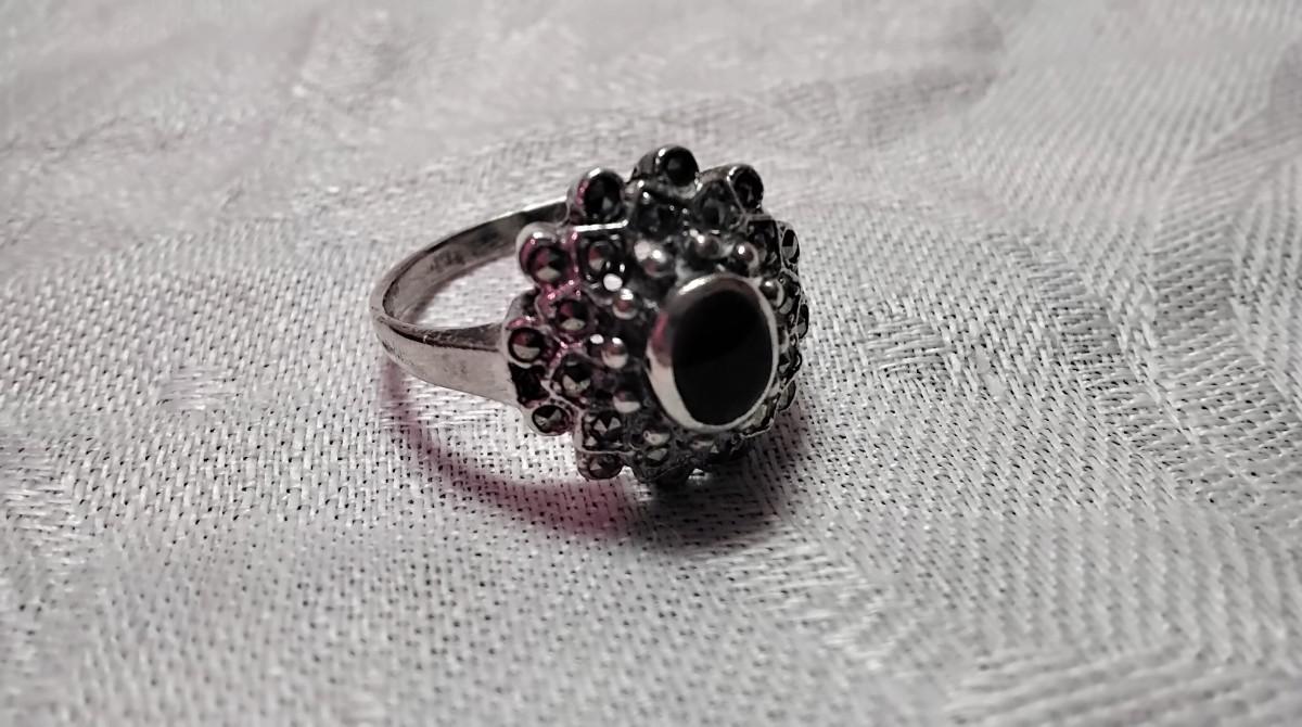 Absolutely Beautiful Onyx And Marcasite 925 Ring Size 9