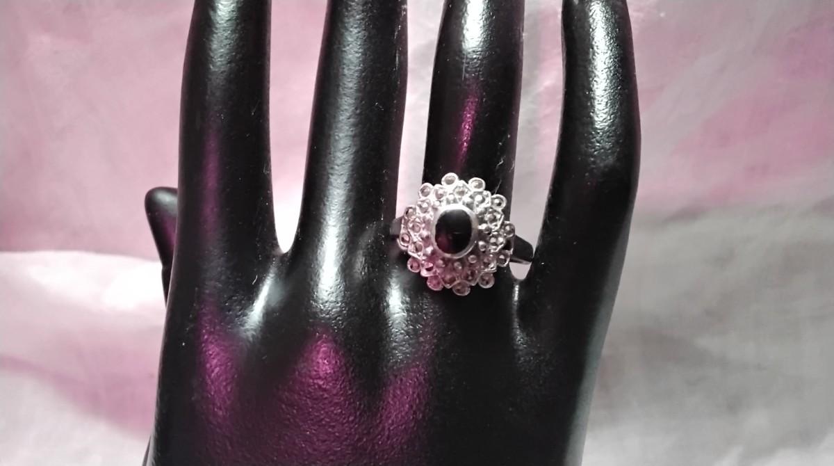Absolutely Beautiful Onyx And Marcasite 925 Ring  Size 9