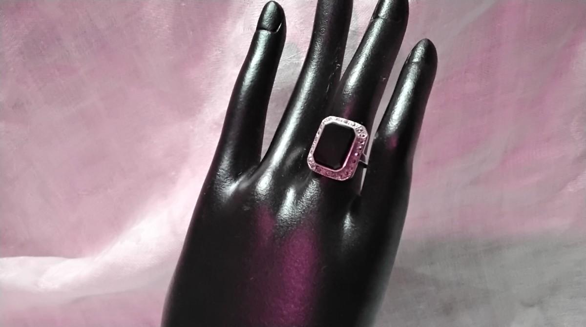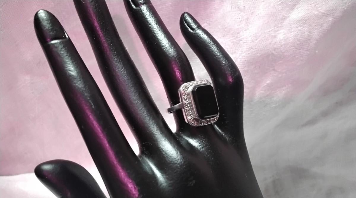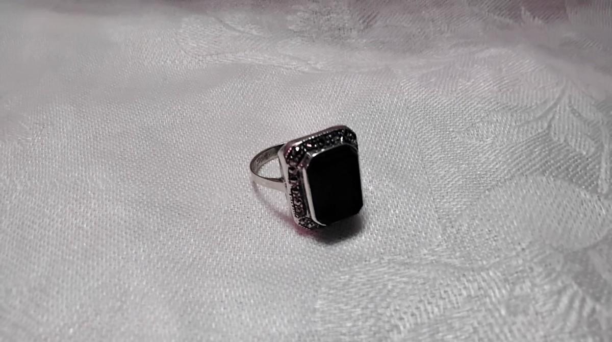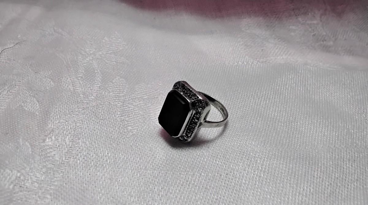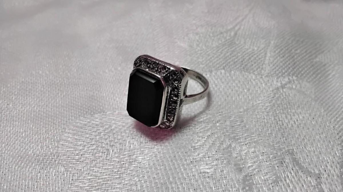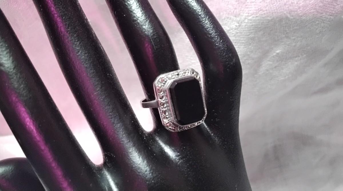 Stunning Onyx and Marcasite 925 Ring Size 7
