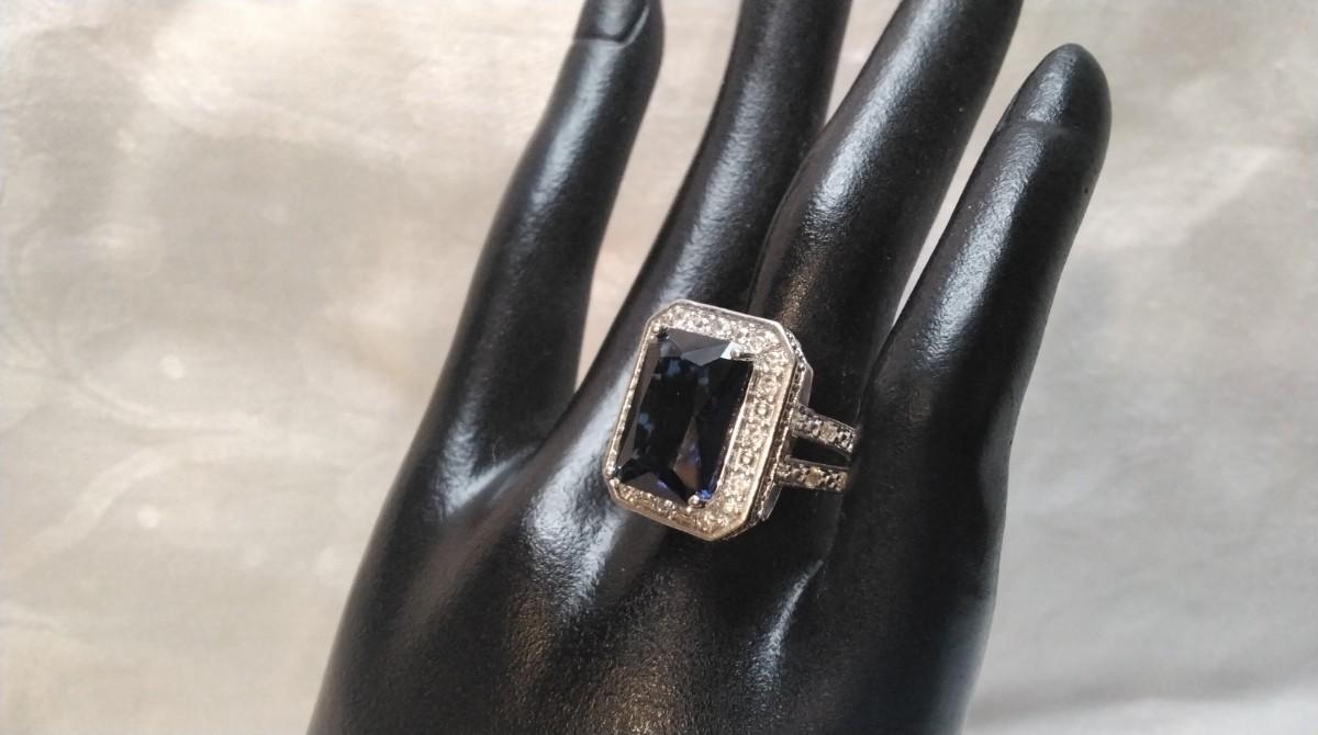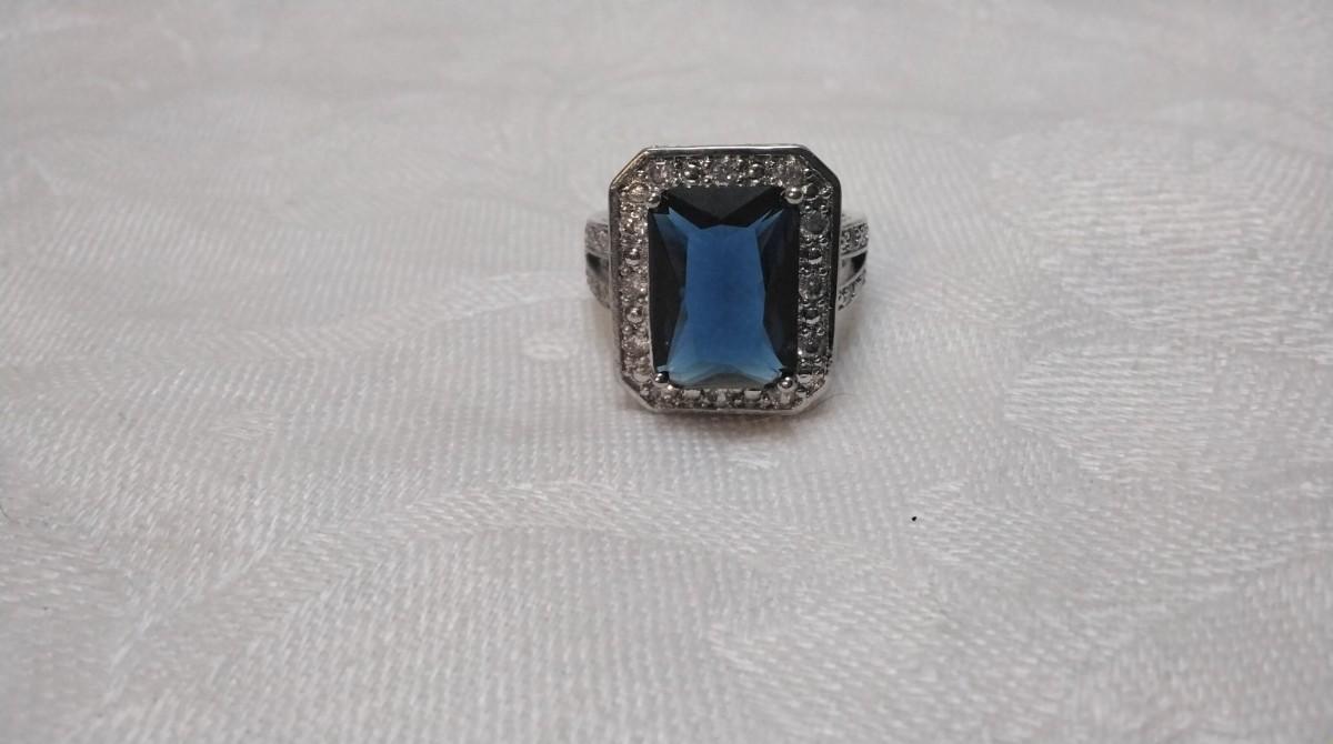 Sapphire Quartz With White Sapphire Accents 925 Ring Size 8.5