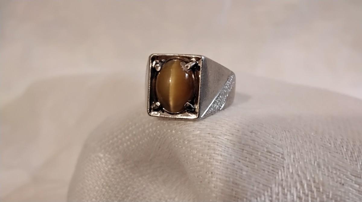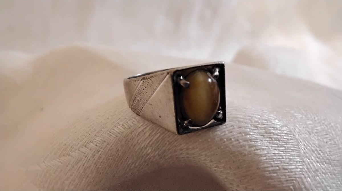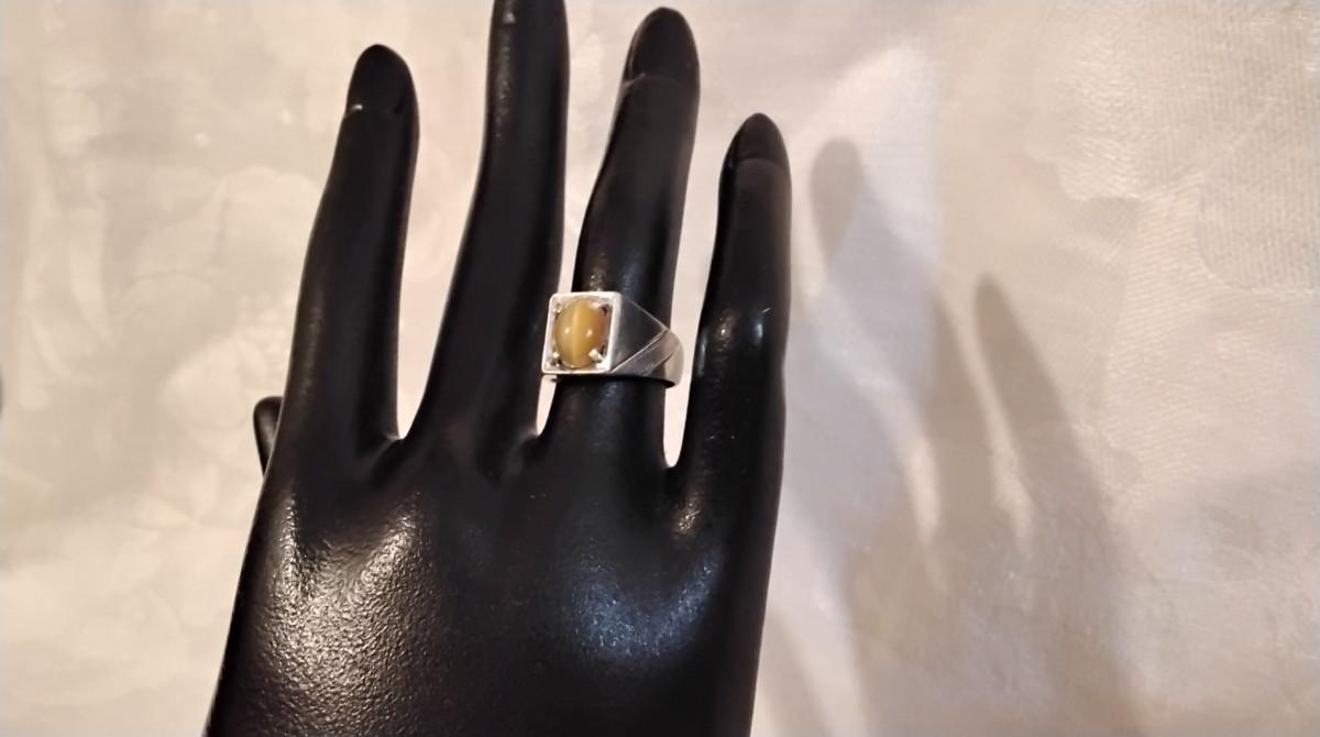 Vintage Rare Yellow Tigers Eye 925 Ring Size 5.5