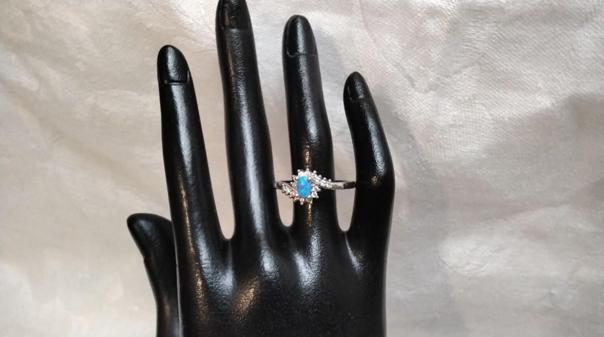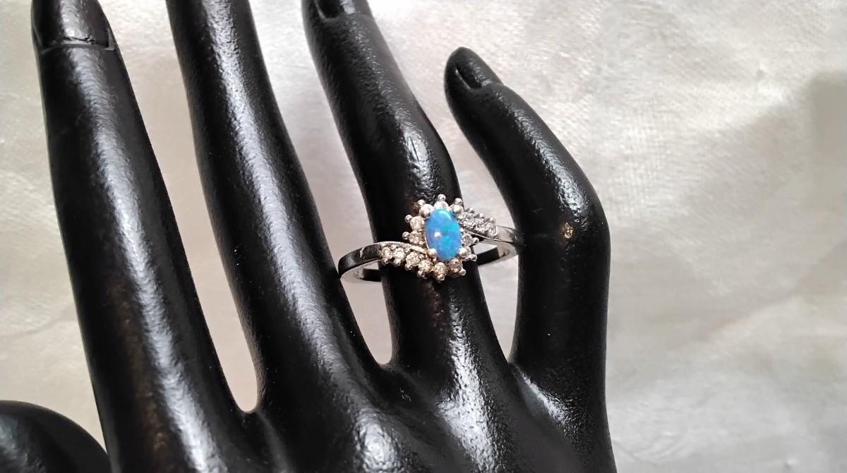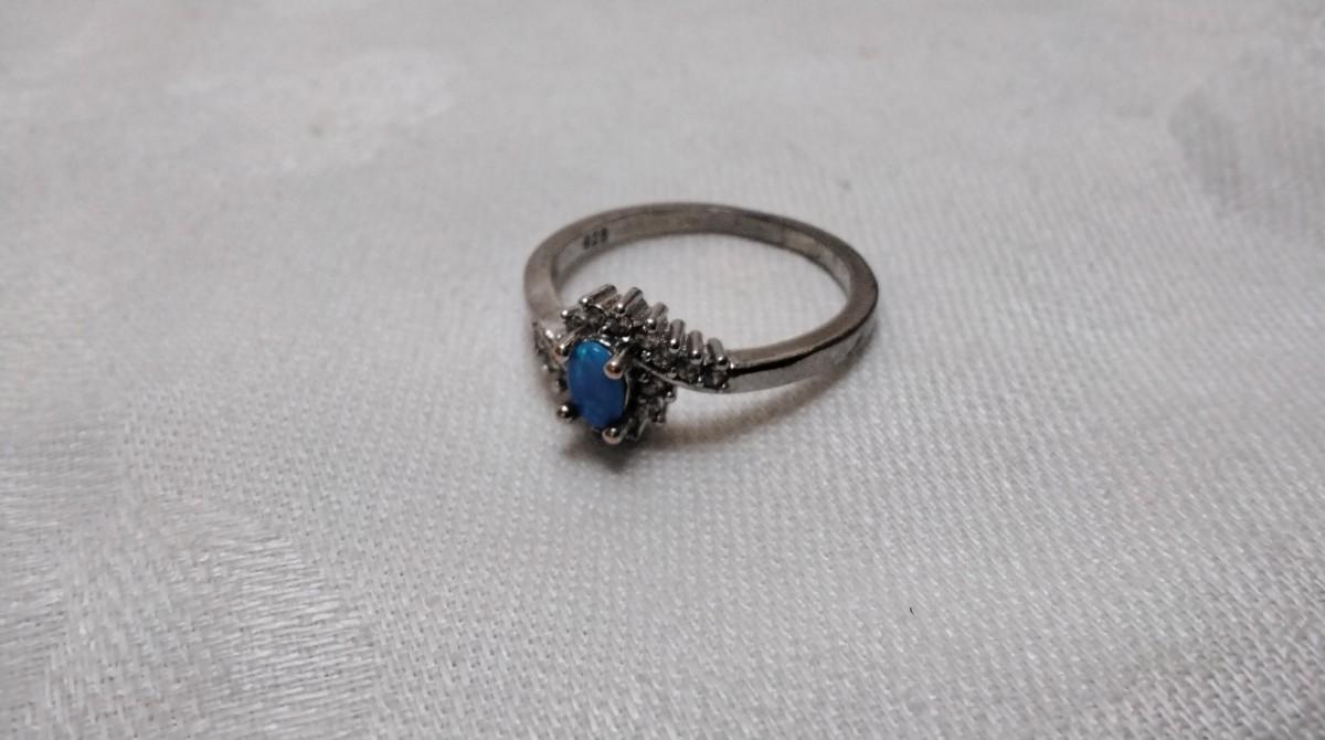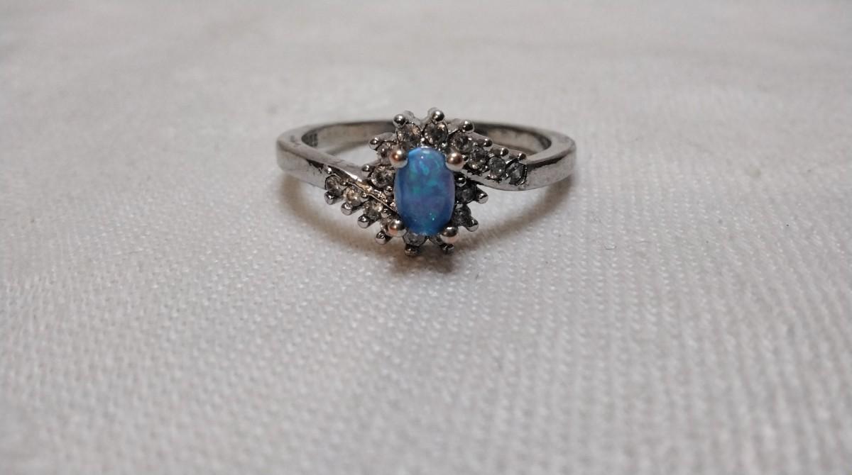 Vintage Blue Fire Opal With White Sapphires 925 Ring Size 11