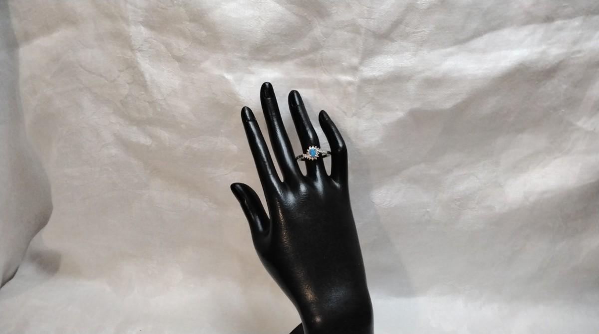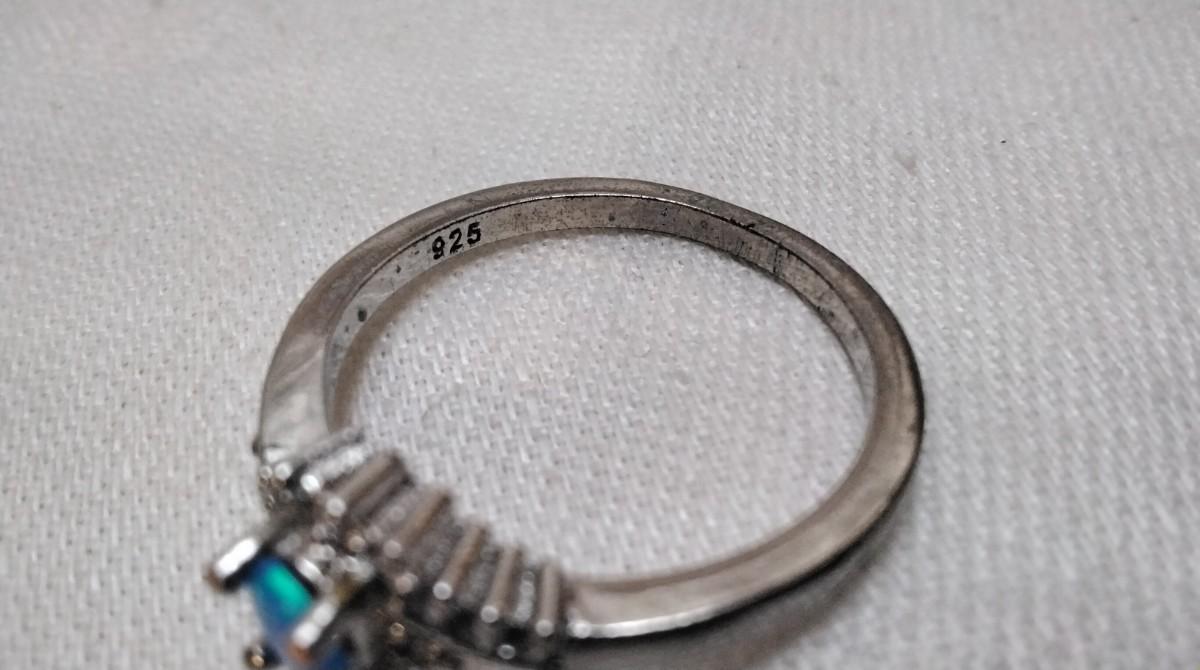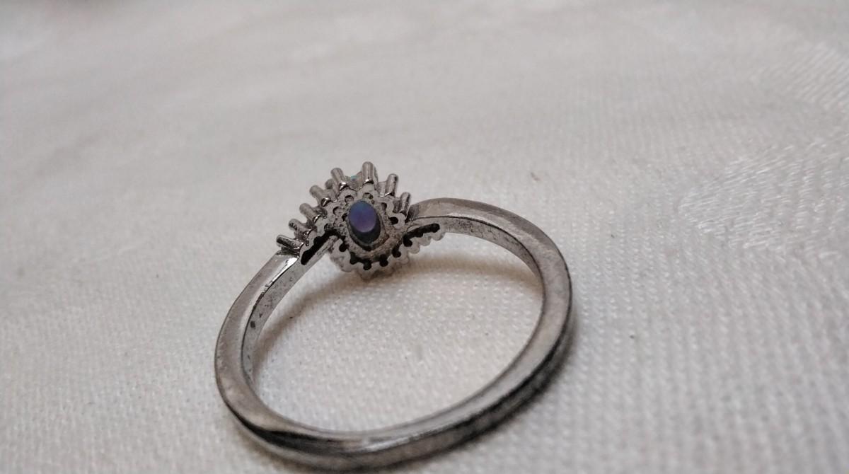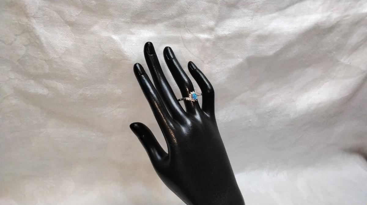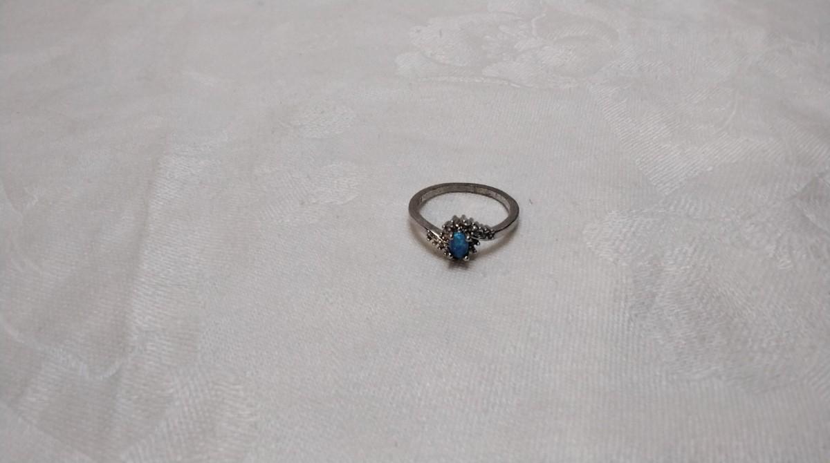 Vintage Blue Fire Opal With White Sapphires 925 Ring Size 11