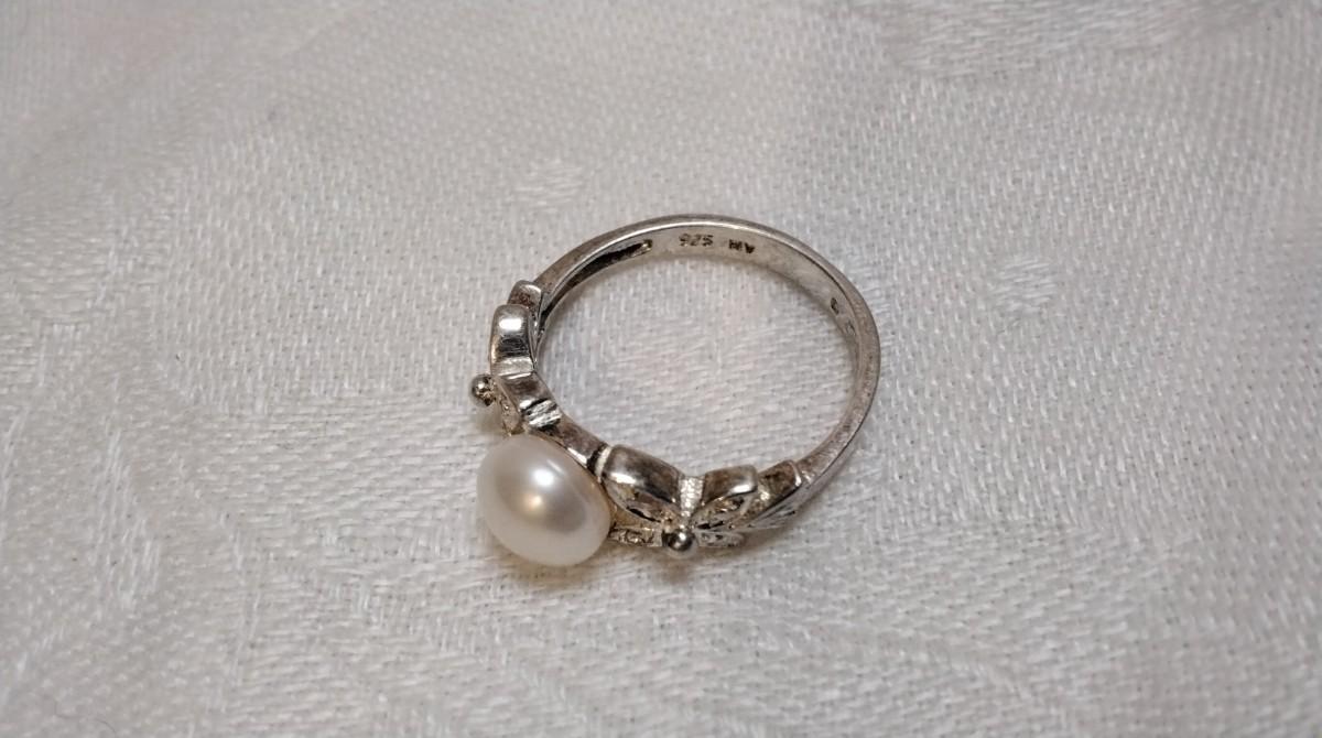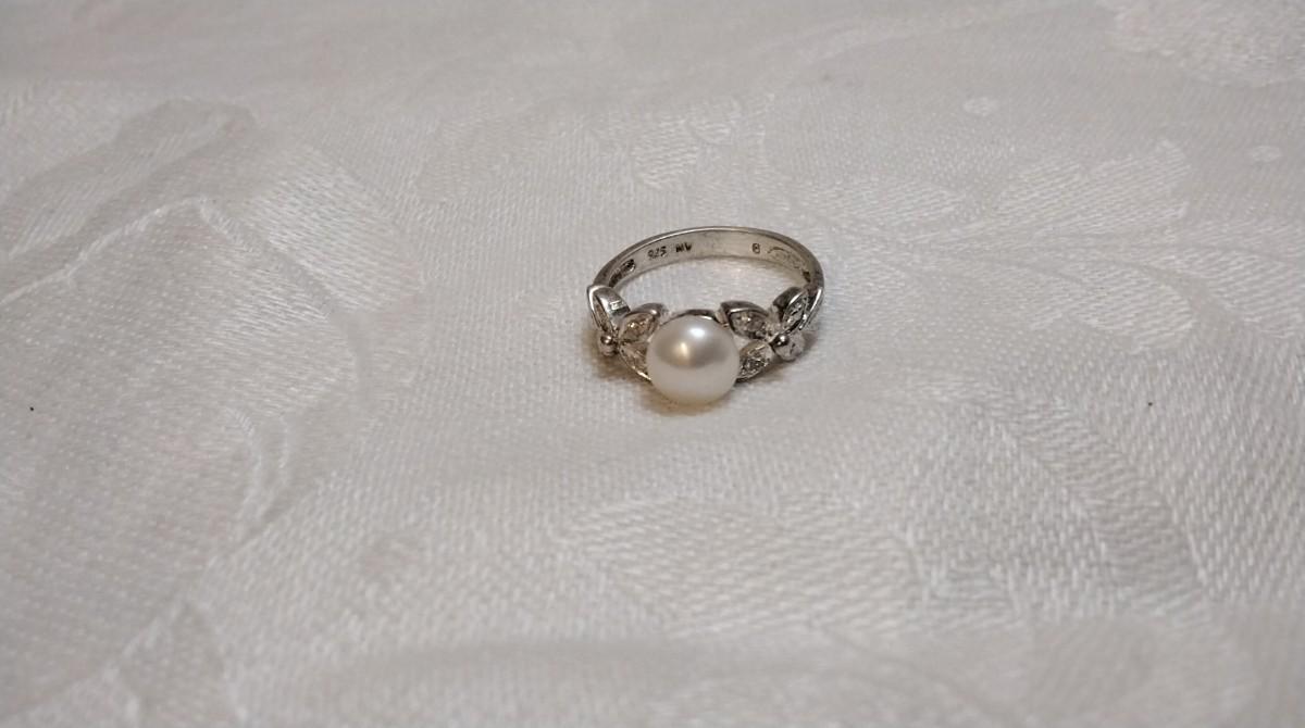 Vintage Avon Sterling Silver Cultured Pearl/White Sapphires Flower 925 Ring Size 6