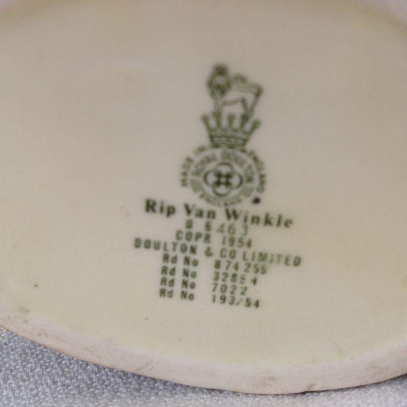 This lot is for a very nice example of the Toby Mug. This mug depicts the classic Rip Van Winkle. Marked Royal Doulton 1954. In very good condition.