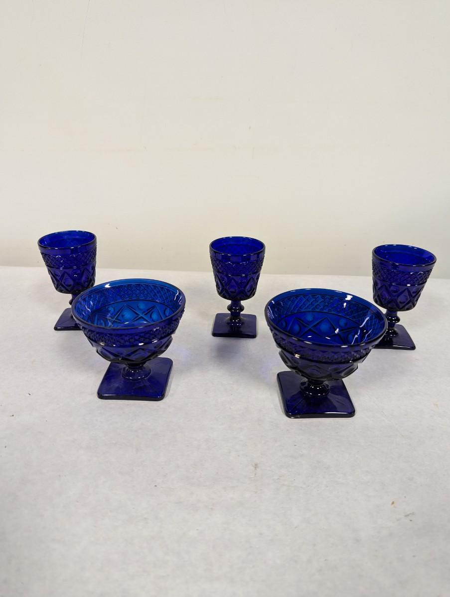 Ritz Blue Cobalt Waffer Stem Cape Cod Pattern Glasses