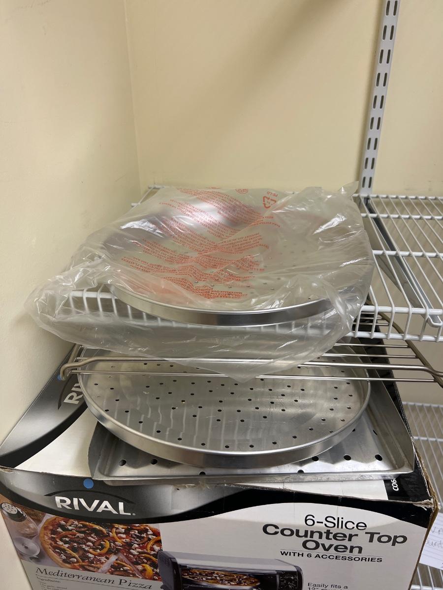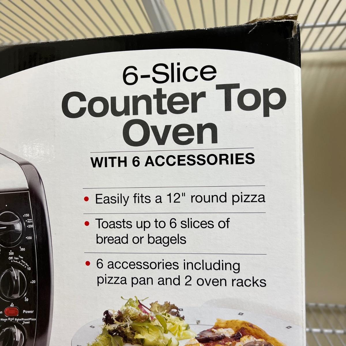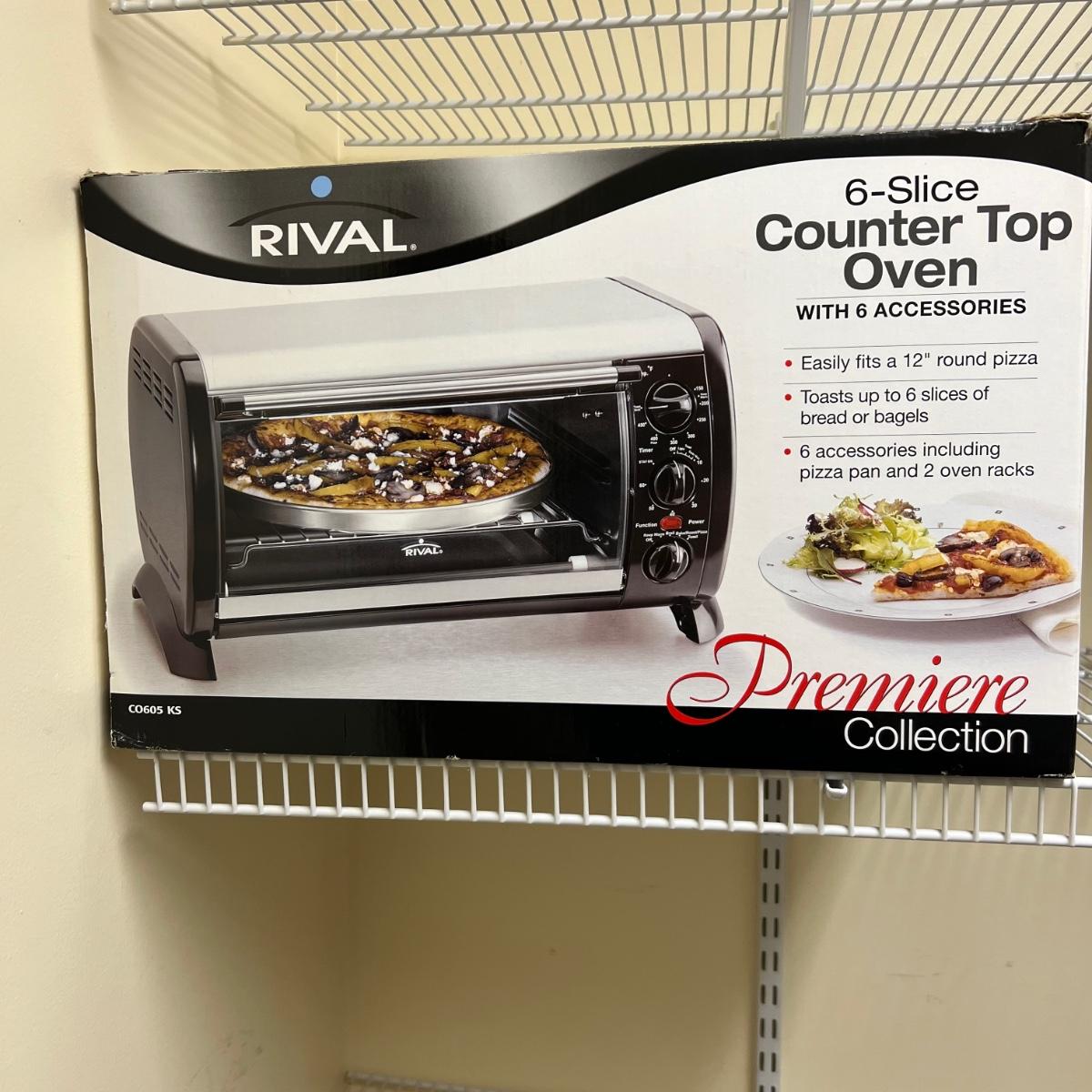 This Rival 6-slice counter top oven is clean and powered on when plugged in. Box measures approximately 21" x 16" x 13"H. Local Pickup Only