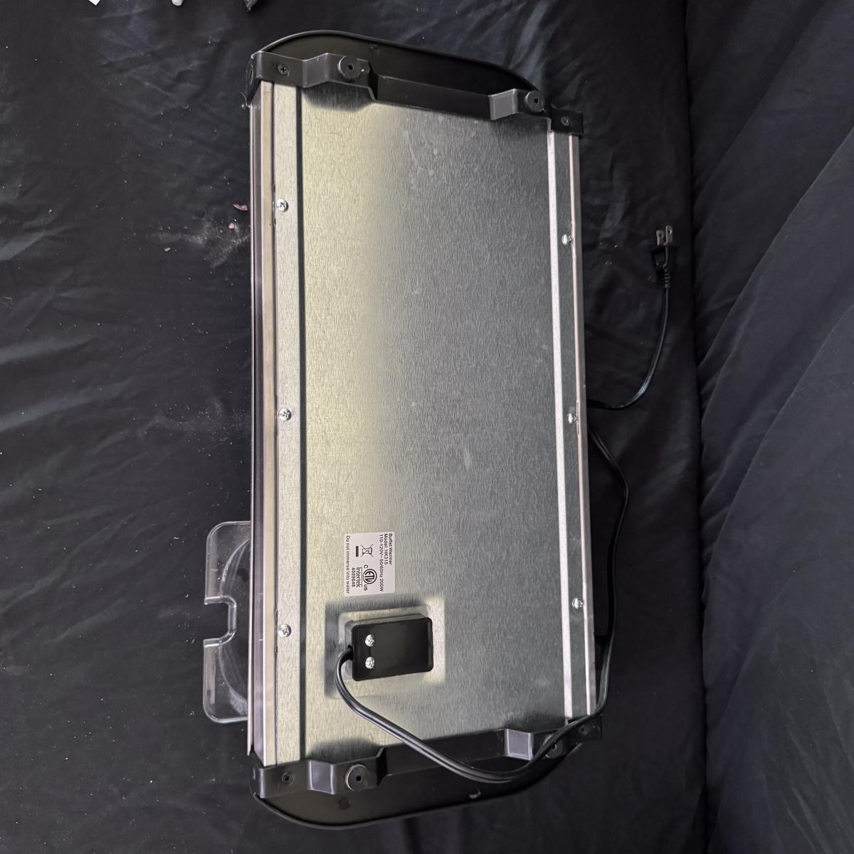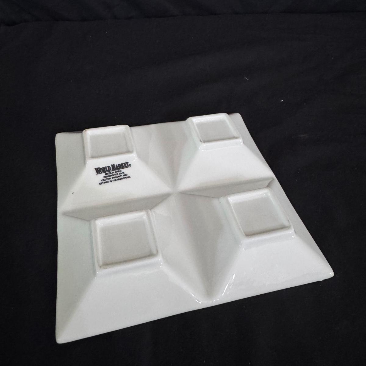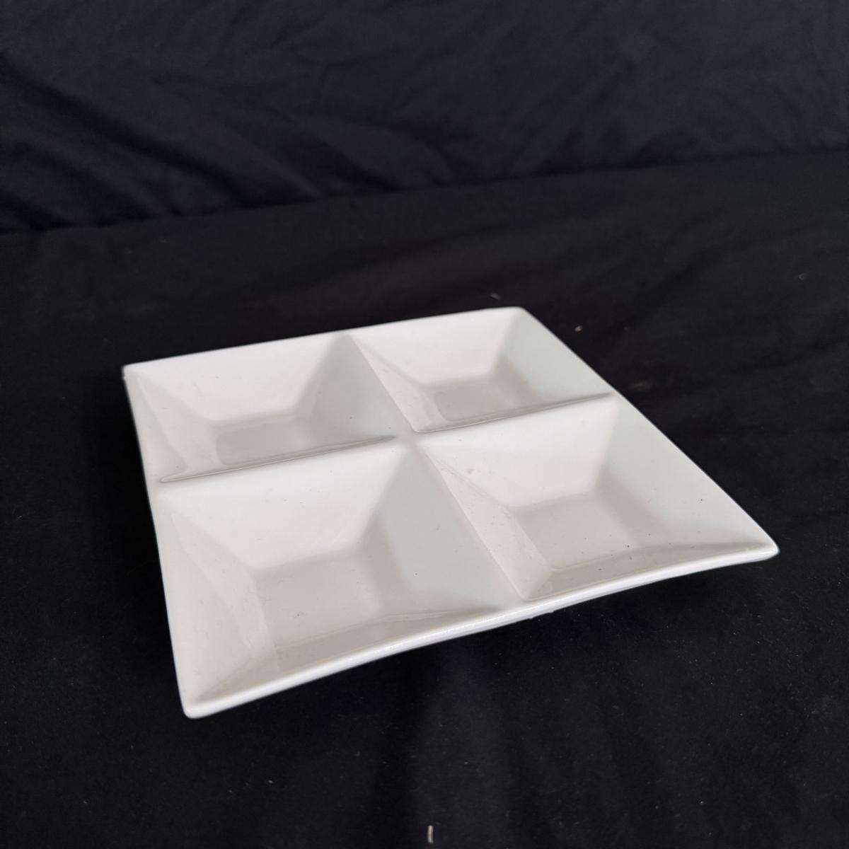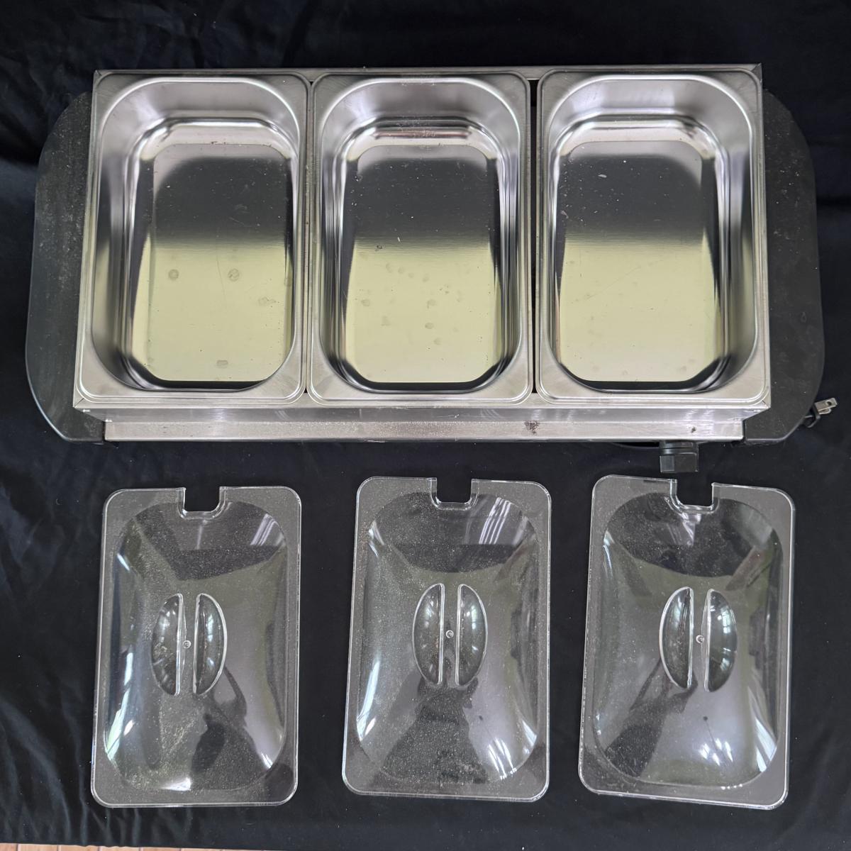 Lot includes one Rival crockpot, one buffet warmer with three inserts, set of five Signature green ceramic plates in a black storage basket, and ten Amco cheese knives. Also included are brand new set of Vanity Fair napkins, brand new 50 count 3 oz clear square tall cubes with spoons, and one World Market serving plate that is ceramic. The buffet server and food warmer measures 22” x 10” x 5”H. Both the crockpot and food warmer powered on when plugged in - see pictures included.