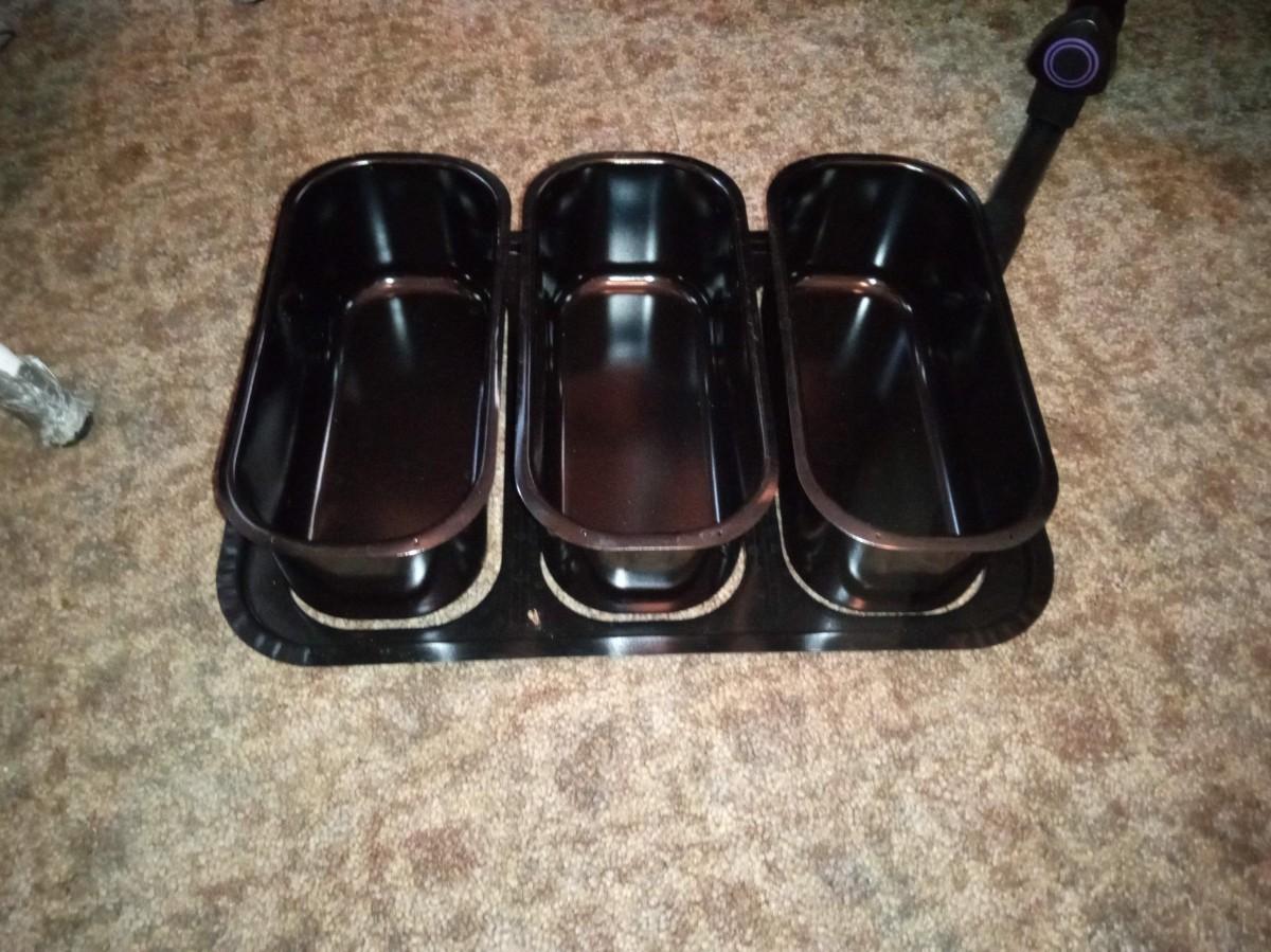 THERE ARE 3 METAL PANS WITH PLASTIC LIDS THAT FIT INSIDE THE ROASTER, WHEN THE PARTY IS OVER SLAP THE LID ON AND PUT IN THE FRIG