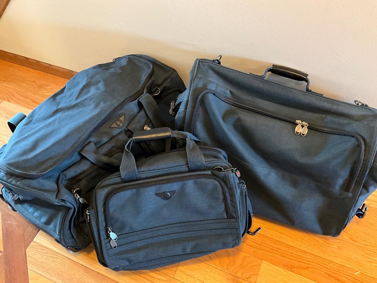 Ricardo Beverly Hills luggage set includes large duffel bag, small carry-on bad and garment bag