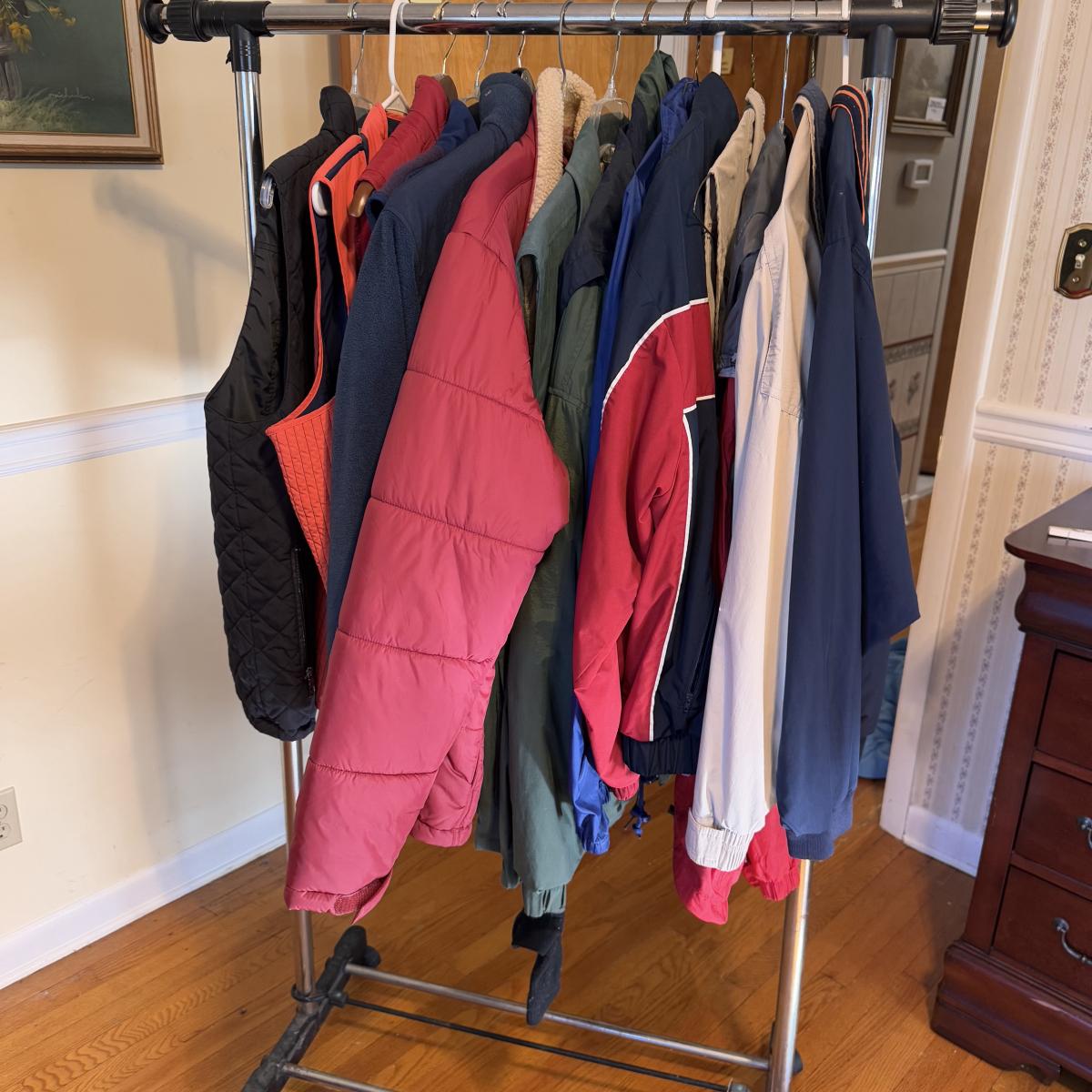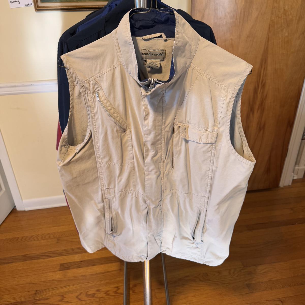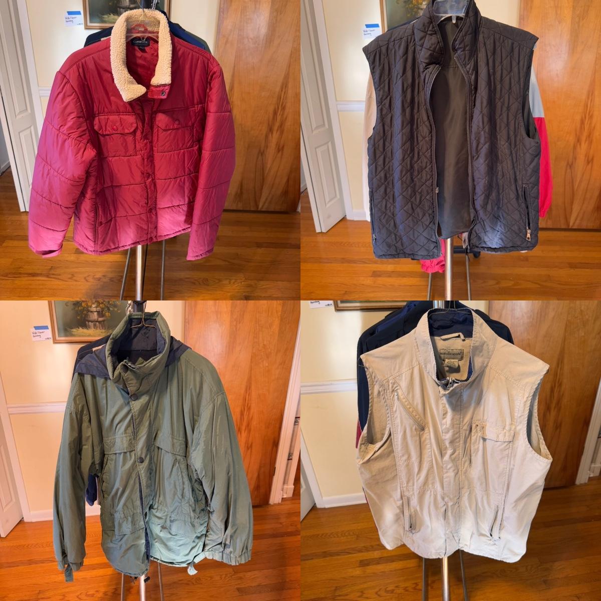 Lot includes thirteen jackets and vests in men’s size medium and large. You’ll find the following brands: River Trader, Columbia, Roundtree & Yorke, Scandia Woods, and Cutter Buck. Shipping available.
