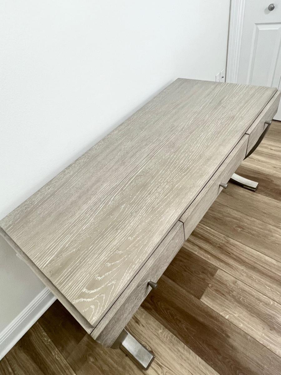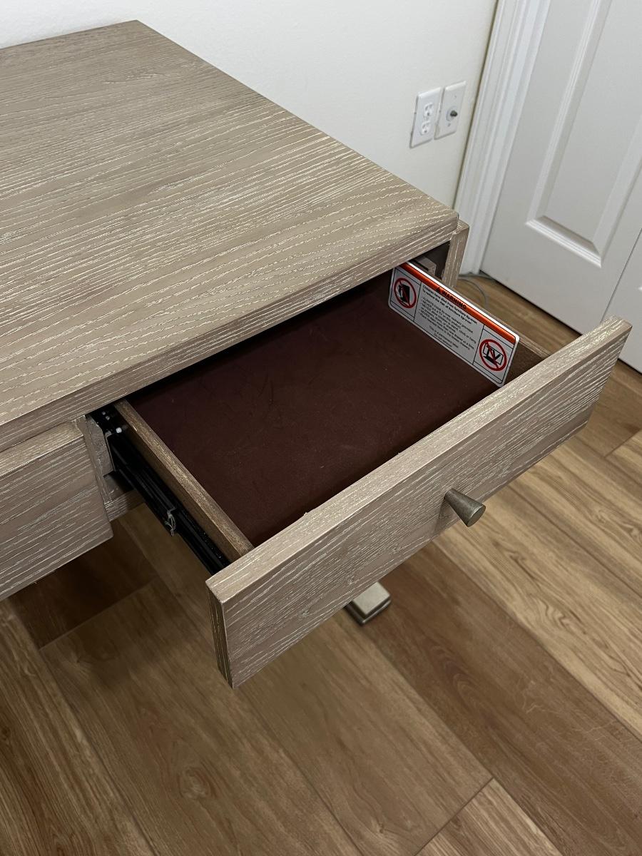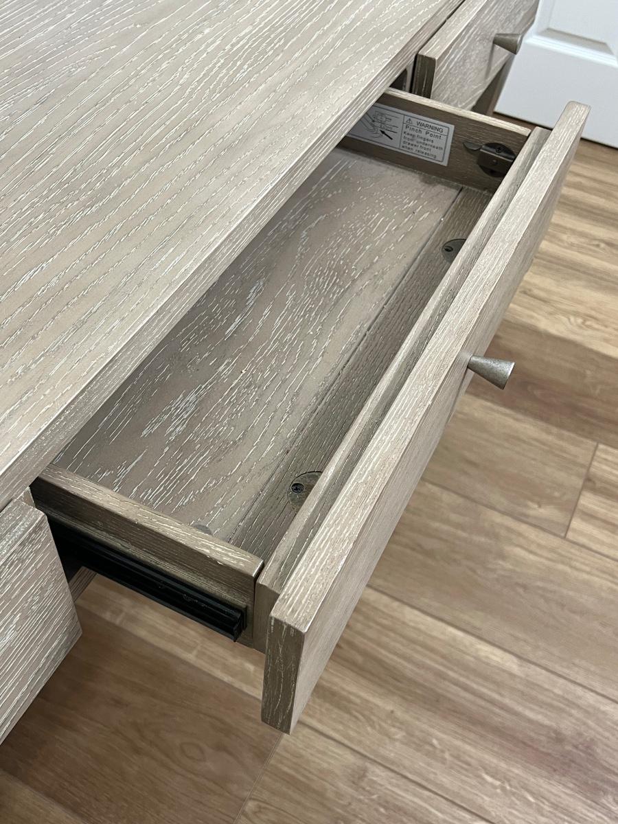 Drawers open & close easily ~ Both side drawers have felt lining ~ The front of the middle drawer drops for keyboard access ~ 29.5” H x 54” W x 26” D
