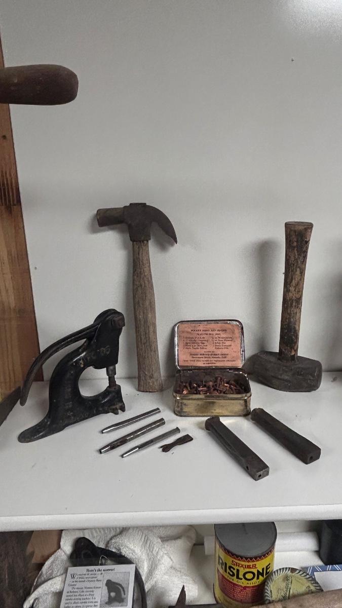 RIVET TOOLS. PUNCHES, COPPER RIVETS, OLD HAMMERS