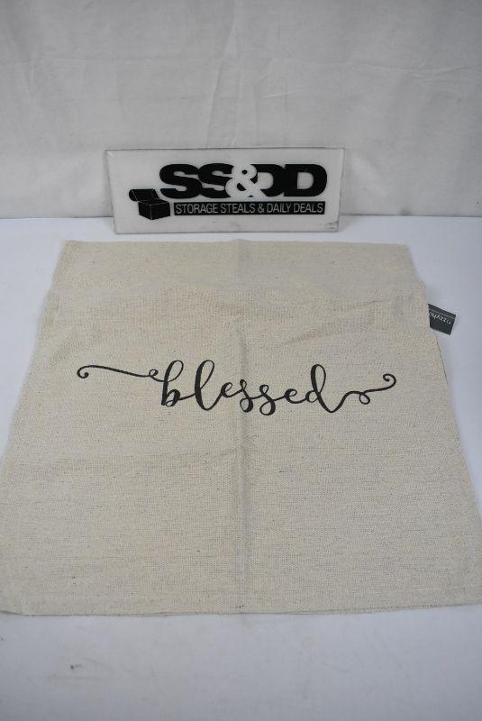 Rizzy Home Holiday "Blessed" Decorative Throw Pillow Cover, 20" x 20", Natural - New